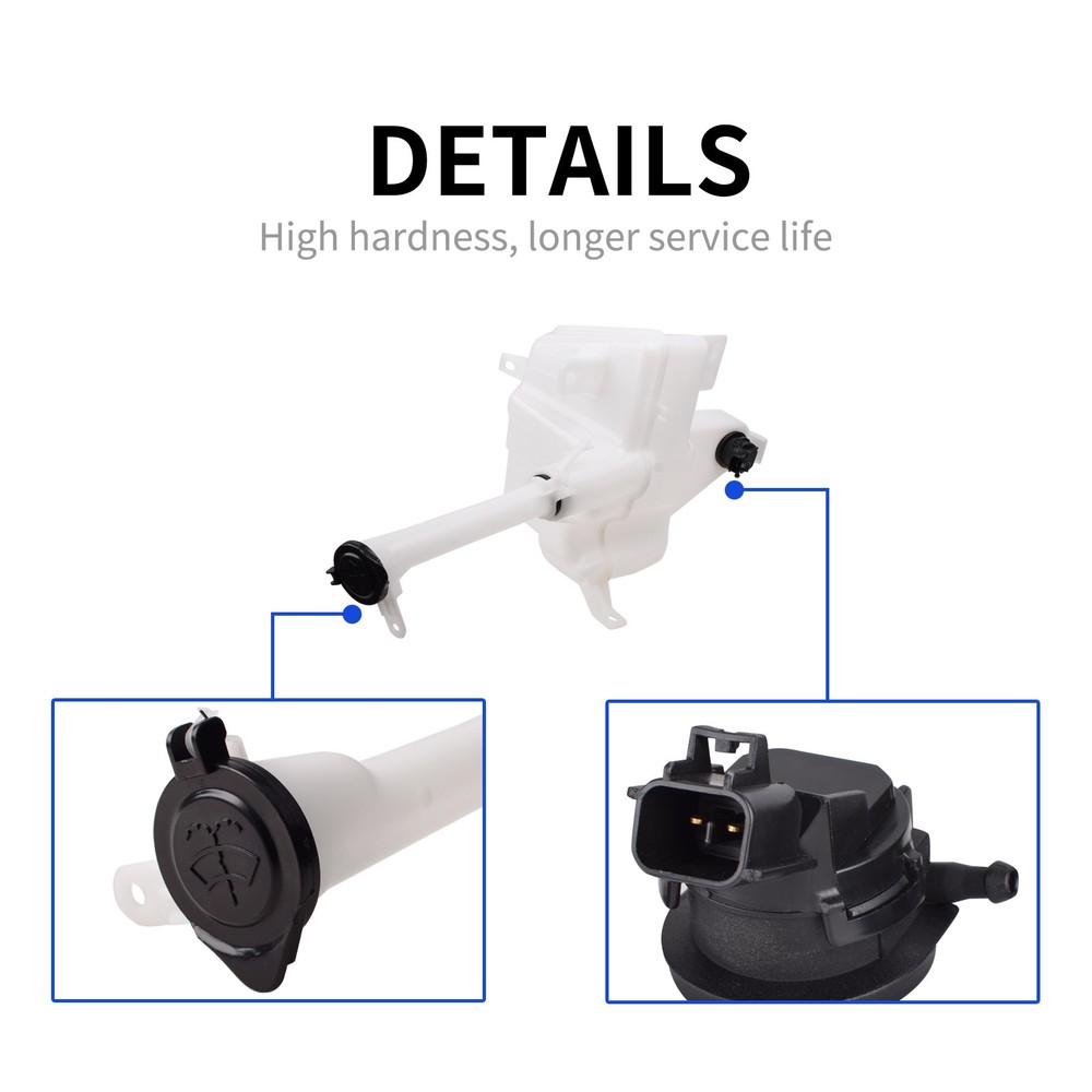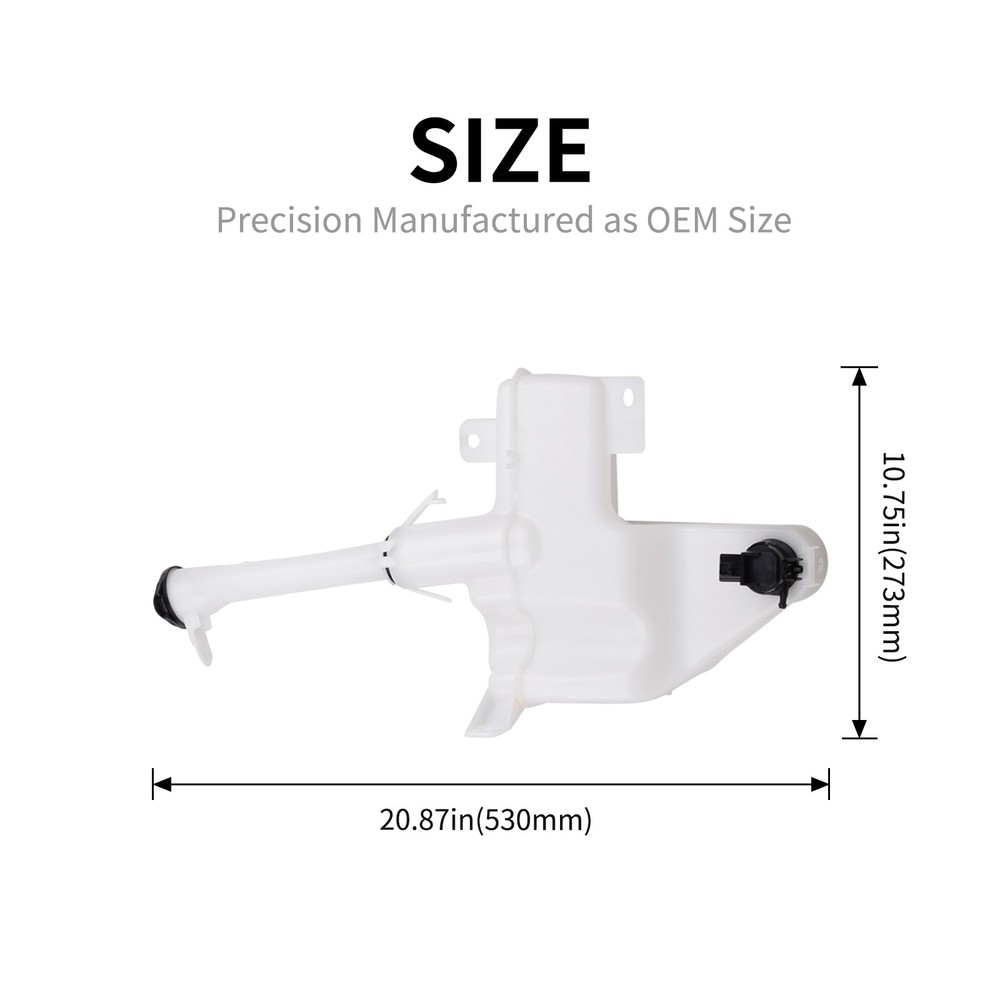 About this item Windshield Washer Fluid Reservoir to restore your wiper system to optimal performance Essential component in keeping your windshield clean and unobstructed helping you stay safe OE Style: High quality, solid construction and design so your windows are clear of debris everyday Windshield Washer Reservoir Tank FEATURES - with Cap - with Pump - EXCLUDES Sensor FITM ENT Aftermarket Replacement Part Compatible with: Corolla 2014 2015 2016 2017 2018 2019.