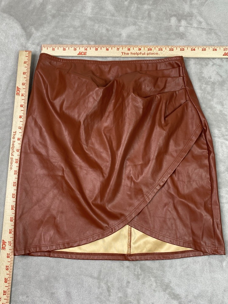 Elevate your style with the Windsor That's A Wrap Faux Leather Mini Skirt. This skirt is perfect for women who want to make a bold fashion statement. The skirt is made of high-quality faux leather and comes in a stunning cognac color that will complement any outfit. The wrap style adds a touch of sophistication and the skirt is designed to fit regular size L. The skirt is perfect for a night out with friends or a special occasion. It's short and trendy, making it a must-have in every woman's wardrobe. The skirt is available in the Clothing, Shoes & Accessories, Women, Women's Clothing, Skirts categories. Add it to your collection today and be the envy of everyone in the room.