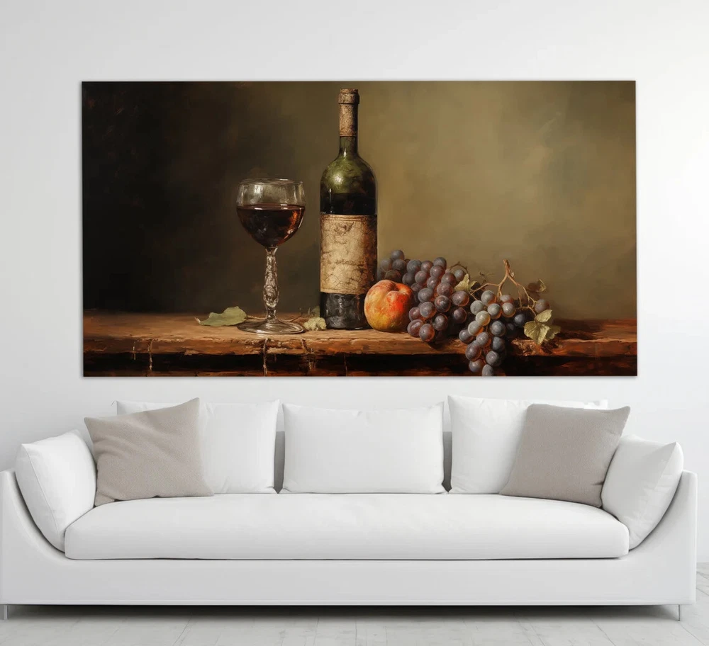 Wine Bottle & Glass Painting Vintage Unframed Canvas Print Australian Wall Art