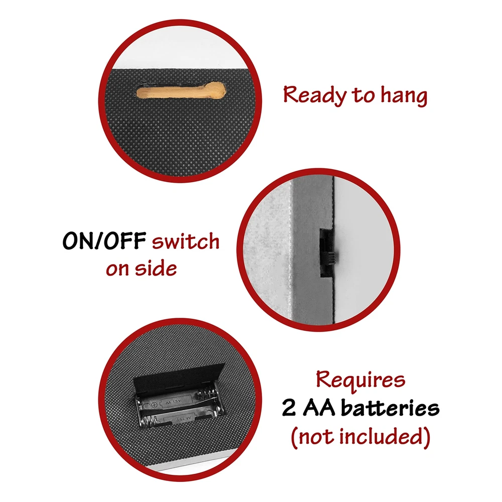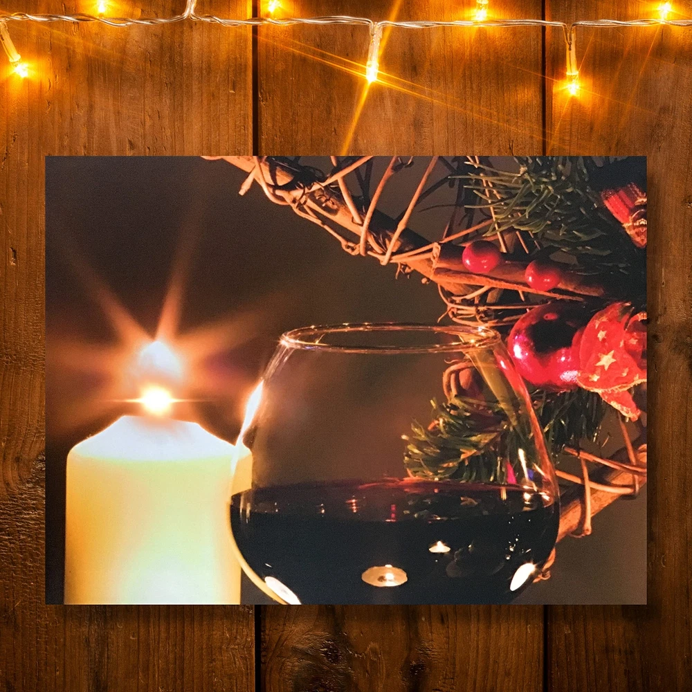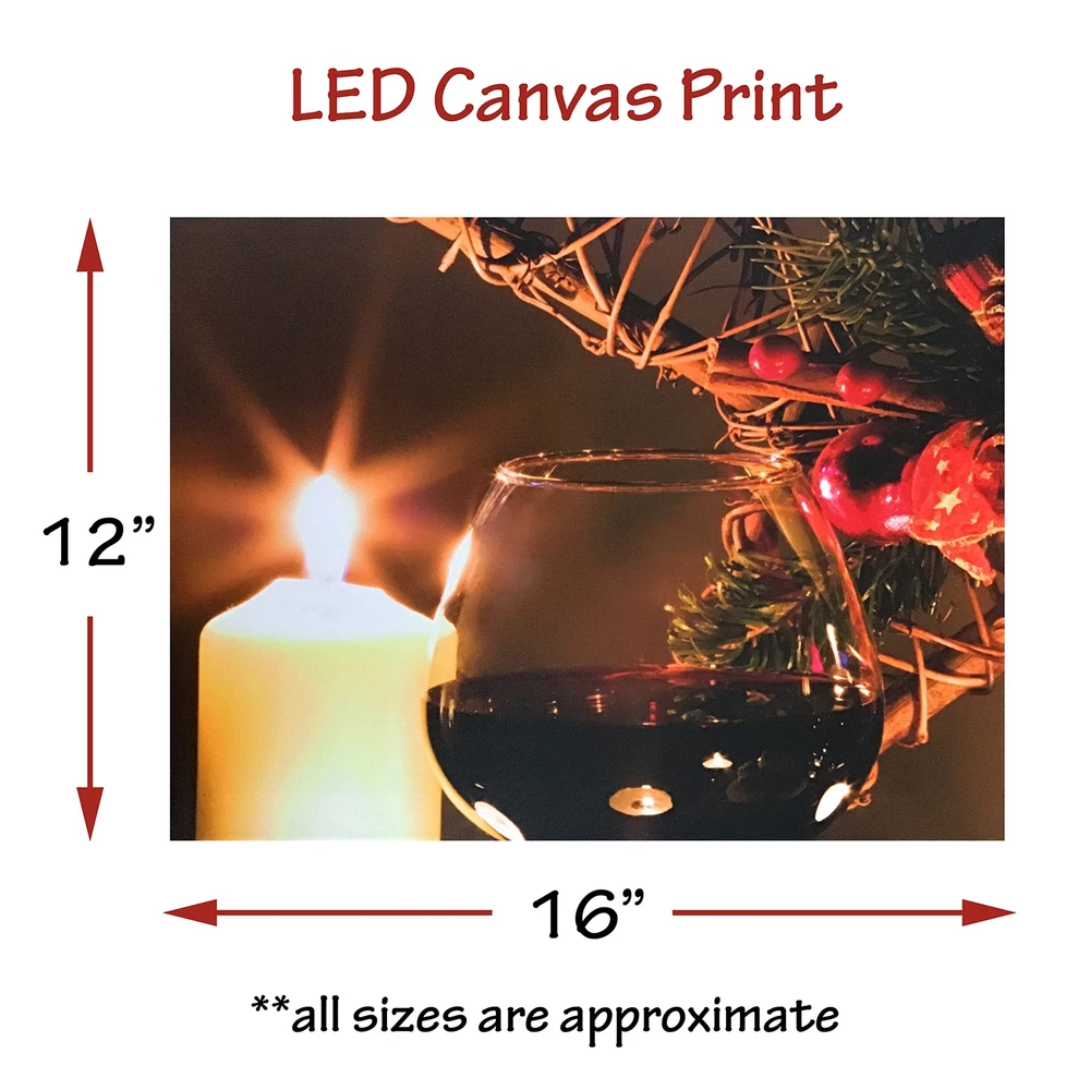 This gallery-wrapped light up canvas print is sure to enhance any home as a lighted decoration. LED Lights that flicker like real candles are hidden inside to create the beautiful illusion of candlelight on the artwork. Hangs on the wall. Requires 2 AA batteries, not included. Measures 12" x 16". This wine and lighted candle canvas wall art is sure to enhance any decoration. Perfect for a holiday dinner or to give as a gift to a lover of all things wine related. Requires 2 AA batteries, not included. Measures 12" x 16".and is 3/4" thick WINE THEMED décor. This is the perfect canvas print to hang in your wine themed kitchen or home bar area. Add it to your wine cellar or hang it next to your wine fridge. Wine enthusiasts would love to receive this lighted print. The candle realistically flickers and glows. Hang this over your mantle for the holidays for an added touch to your Christmas decorating. ON/OFF SWITCH is located on the side of the framed art. Each light up print is mounted on a wood frame with a protective cloth backing. Comes ready to hang right out of the plastic covering. is a registered brand protected by Trademark and is distributed by Relevant Gifts.