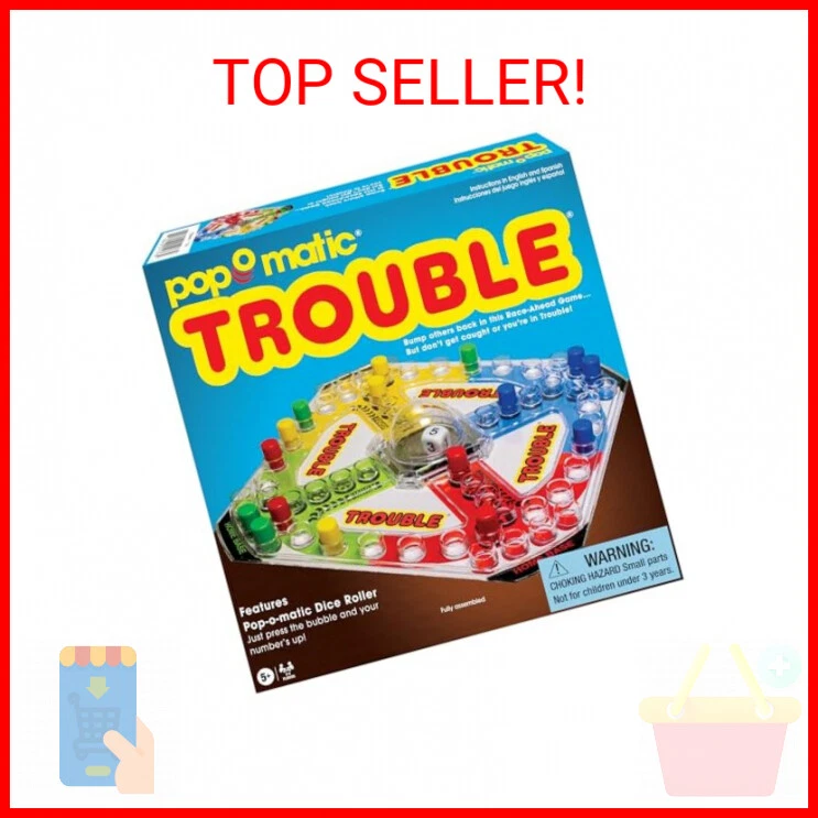 Winning Moves Classic Trouble with Retro Artwork and Pop-o-Matic Popper Games USA, Designed for Kids, Ages 5+ Perfect for an Indoor Interactive Activity (1176) - POP-O-MATIC: If you grew up anytime after 1965, you've probably played Trouble - and LOVED popping the popper in the middle of the board. Our classic edition brings back those great memories! - EASY TO LEARN: Ideal for families with young children, TROUBLE is a breeze to pick up and plays in just 30 minutes - POP, POP, POP!: Pop the popper and try to get a 6 so you can enter one of your pegs into the game. Once entered, you move your peg by the count of the dice pop. If you're lucky enough to land on an opponent's peg, they are sent back home. - HOW TO WIN: Race all four of your pegs around the gameboard and head for your finish line as fast as you can! Just don't get sent back home by an opponent or you'll have to start all over again! - LEARN & PLAY: Young children will learn valuable skills like counting, turn taking, planning ahead, and how to win or lose! - Included rules are in English and Spanish! You can also download them right here. Scroll down to the section called Product Guides & Documents! - Includes plastic game board - Includes pop-o-matic die roller - English and Spanish instructions Payments We accept the following payment methods PayPal Support Our dedicated customer support team is here to assist you from 9AM to 5PM Monday through Friday, excluding public holidays. Should you reach out to us and not recieve an immediate response, it's likely due to a higher-than-usual volume of inquires. We want to reassure you that your concerns are important to us, and we're working dilligently to get back to you. Expect a response by the next business day at the latest. Your understanding and patience are greatly valued as we strive to provide you with the best support possible! Shipping All orders are processed within 5 business days. Shipping estimates may be shown on this listing by eBay, and these are often not an accurate reflection of our shipping times. If we are experiencing a high volume of orders, shipments may be delayed by a few days. Please allow additional days in transit for delivery. If there will be a significant delay in shipment of your order, we will contact you via message. Shipping rates & delivery estimates Shipping is often free, but if charges for your order apply they will be calculated and displayed at checkout.
