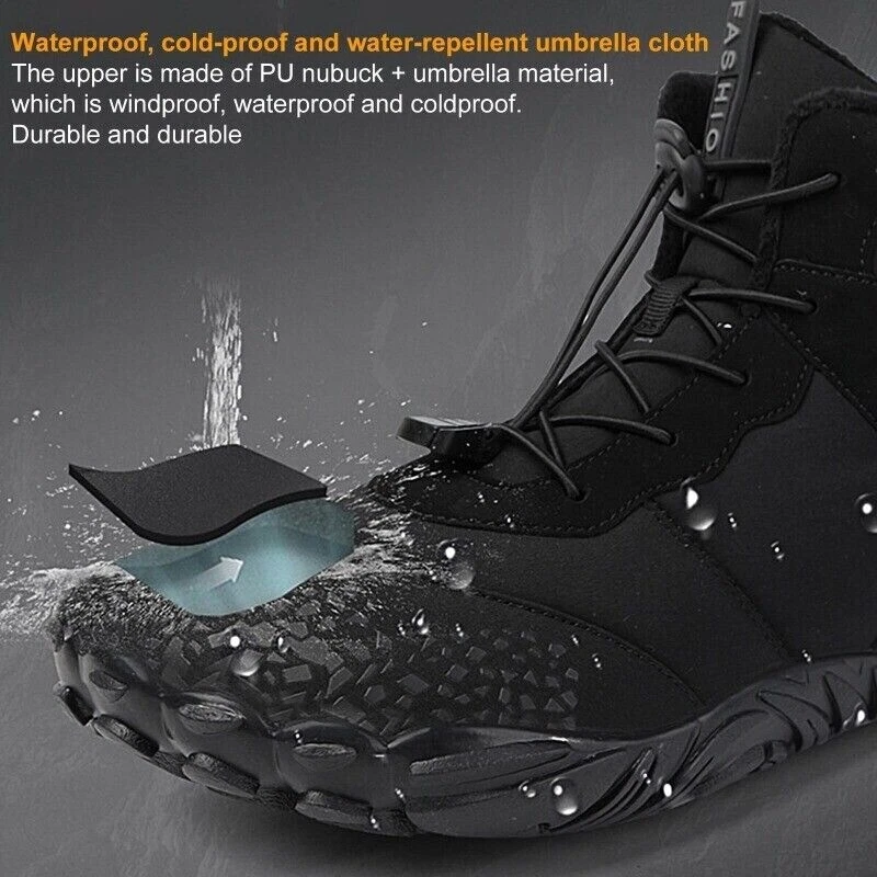 eBay Bullet Points: Comfortable and Stable: These barefoot boots have a wide toe box that provides enough space for your feet and does not squeeze them. You can enjoy the natural feeling of walking barefoot while staying stable and protected. Thermal Lining: Wrap your feet in these barefoot boots that have a short faux fur lining for extra comfortability. The thermal lining is skin-friendly and breathable, keeping your feet cozy and warm in cold weather. Anti-Slip Bottom: Our barefoot boots feature an anti-slip bottom with soft balance, which provides better anti-slip performance and helps you maintain correct posture. You can enjoy a safe and comfortable wearing experience with our boots. Effortless Comfort: Get the perfect fit with ease using our barefoot boots' quick laces. Setting the ideal tightness takes seconds, effortless and easy to wear. Wide Use: Whether you are hiking, cycling, jogging, or camping, these barefoot boots are suitable for any outdoor activity. They are lightweight, breathable, and flexible, allowing you to feel the natural terrain and train your feet muscles. Discover the perfect boots for mountain climbing! Our barefoot boots for men offer a wide toe box and great balance, making every climb effortless and comfortable. You'll enjoy the ultimate comfortability and support, essen/tial for any outdoor adventure. Specification: Material: PU+canvas+thick plush lining+rubber sole Size: 36-46 Weight: about 750-900g Product List: barefoot shoes wide toe box x1 Notes: 1. Due to the different monitor and light effects, the actual color of the item might be slightly different from the color which is showed in the pictures. 2. Please forgive a slight measuring deviation due to manual measurement.