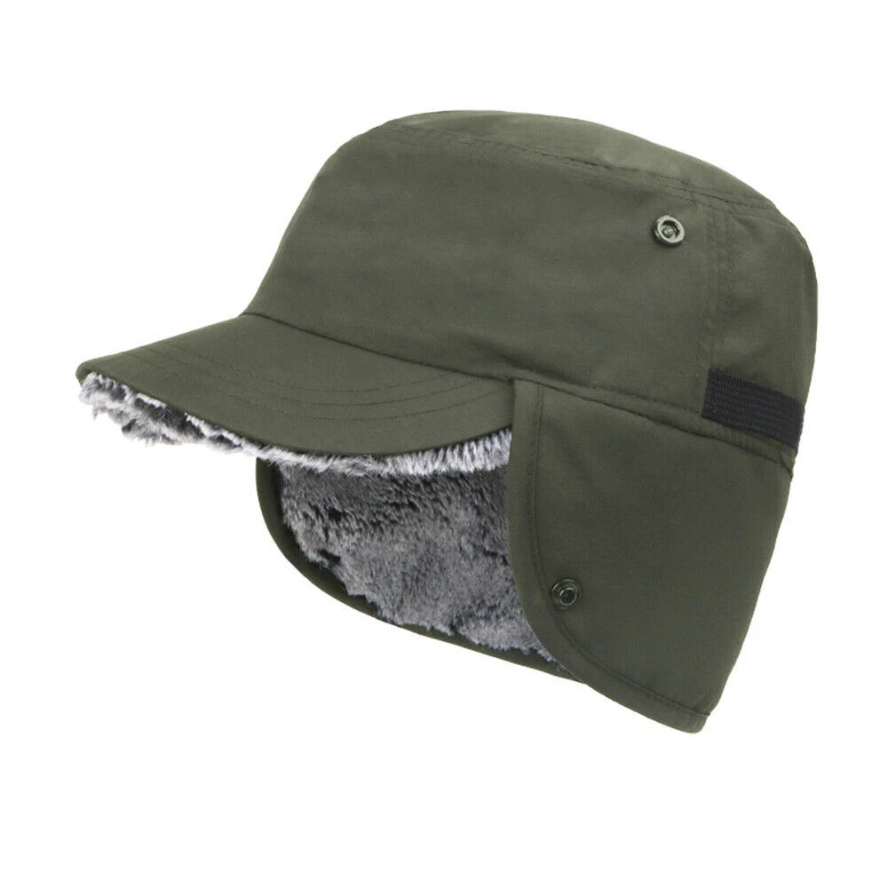 Product Description: Features: 1. MATERIAL: The cadet warm hat is made of nylon and waterproof fabric combined with skin-friendly fur lining. The hat is made of cotton outer combined with soft plush inner lining. Windproof, snowproof and waterproof, which keeps warm and ensuring extremely high comfort. 2. FASHION WEAR WAY: Two short side faux fur lined ear flaps which could be flipped up or down, featured with 2 snap buttons, could be folded up and securely snapped. Two long side faux fur lined ear flaps that be folded up and tied at the top of the hat, or tied at the chin, or just let down, give you different style. 3. THICK AND DURABLE: Warm earflaps and super-soft plush inner lining, great coverage for head, ears and neck,effective against cold weather, keep you warm and comfortable while in outdoor activities. 4. ONE SIZE FIT MOST: One size fits most head circumference 58-60cm/22.8"-23.6". Adjustable rear strap or adjustable chin strap offer a comfortable, breathable fit, fitting for most adults. 5. OCCASION: This classic pilot style thermo hat is great for skiing, snowboarding, camping, climbing, hiking, motorcycles, hunting, etc. Effectively resist the cold for you in cold weather. Package Includes: 1 x Winter Hat