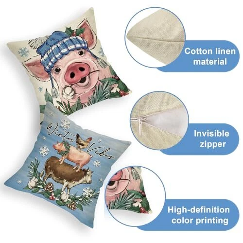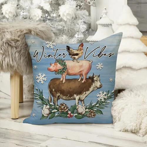 Return Policy Fast Delivery Trusted seller Winter Vibes Farm Animal Decorative Throw Pillow Covers 20 x 20 Set of 4, Highland Cow Pig Hen Farmhouse Blue Cushion Case Decor, Christmas Rustic Bless Our Home Decoration for Sofa Couch Product Description Cotton Linen Exquisite Design: The winter pillowcases are designed with cow, highland cow, piggy, hen, pine cone, cotton, red berry, snowflake patterns printed in the middle of the pillowcase. The simple retro style is very suitable for expressing your feelings. The pillowcase is not only a gift full of love, but also a very warm home decoration Square Shape: Our pillow cover does not include the pillow inserts, only one pillowcase of 16×16 inches. Due to manual cutting and sewing, please allow a deviation of 0.5-1 cm. The invisible zipper design is easy to refill. The pattern is a single-sided design Cotton Linen Material: Our burlap throw pillow cases are made of cotton and linen fabric, reflecting the rustic and farmhouse style, durable and comfortable, no odor, no fading, no harm to the skin, don't worry about harm to children and pets, can be machine washed or hand washed Suitable For Inside And Outside: Our toss pillow covers are not only suitable for indoor places such as living room, children's room, bedroom, etc., but also apply to outdoor places such as camping grounds, beaches, and gardens. They are the best decoration choice for sofa couch bench and lounger Warm Gifts: Our pillowcases are designed in different styles and suitable for men and women of all ages. Of course, not only at festivals, but our pillowcases can also be used all year round. You can buy this pillowcase to your loved ones whenever you want to express your love. They are excellent Thanksgiving Day gift ideas for friends and family Shipping Returns Payment Shipping Shipping is FREE to all addresses other than APO/PO boxes in the lower 48 states. All our stock ships from US-based warehouses. Shipped via USPS or UPS (depending on location and package weight) Unless stated otherwise, all orders will ship within 24-72 hours of your payment being processed. Check our feedback to see the great reviews of FAST shipping we offer. Returns Seller does not accept returns Payment We currently accept payment via eBay managed payments only. Once payment is cleared, we will dispatch your shipment within 1-3 business days. Please refer to the "Shipping" tab for more information regarding shipping speed to your destination.