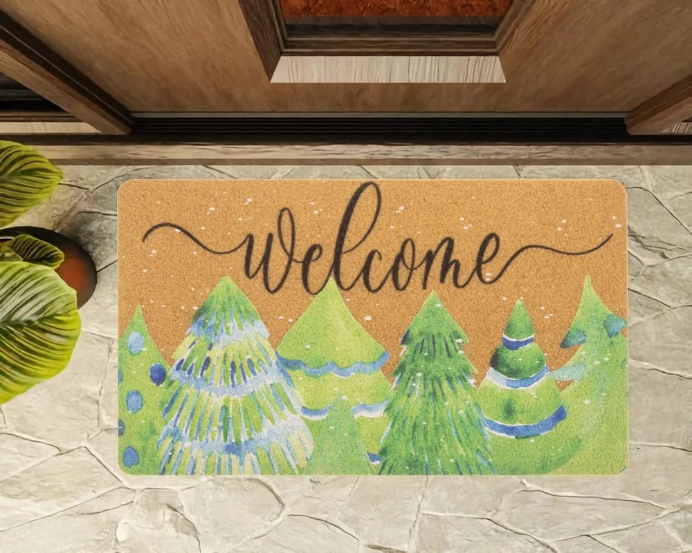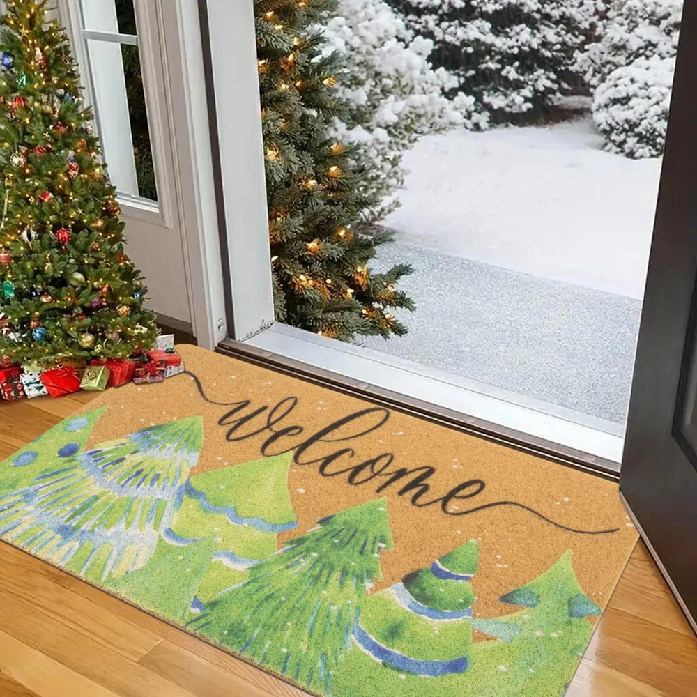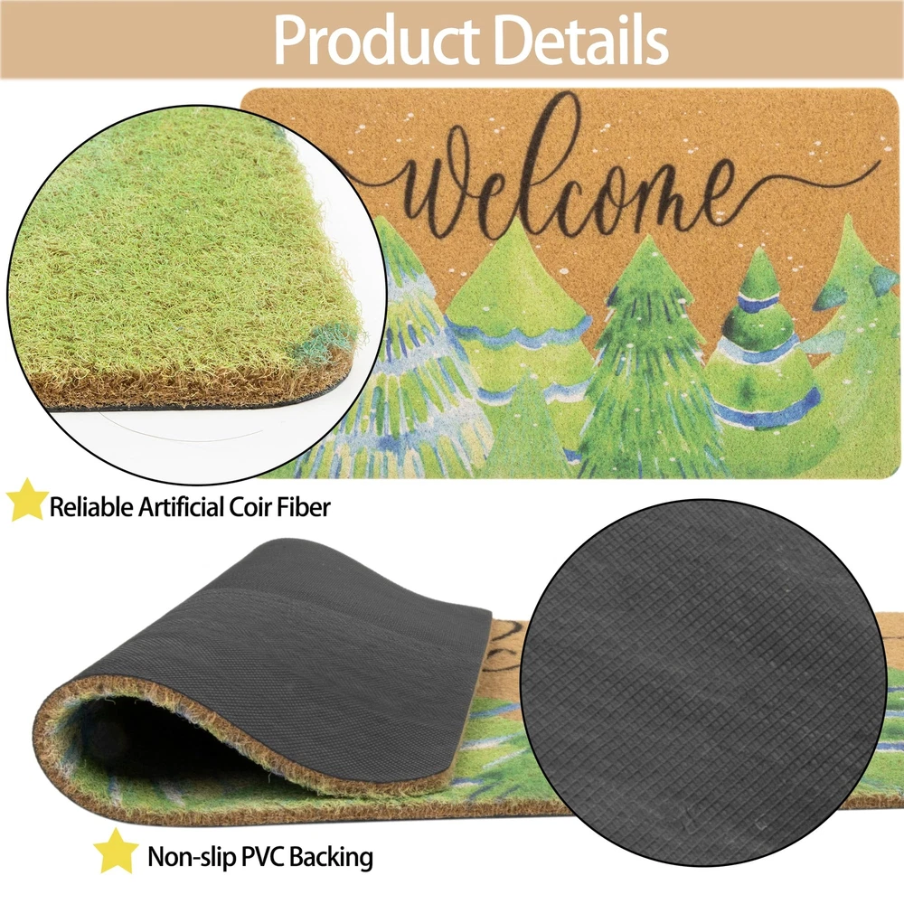 Cute Winter Christmas theme design of welcome mat bring festive spirit into your house. High Quality: The winter pine trees doormat is made of artificial coir, which is sturdy and reliable for long-term use, no shedding, can withstand high-traffic areas. Application: Cute Christmas theme design of welcome mat bring festive spirit into your house. Christmas mats for front door are reliable and pet friendly. The tightly woven coir traps dirt, debris and moisture while updating your front door. Non Slip: The Christmas decorative door mat measures 17" x 29". The thickness of the pile is 0.4 inch. The non-slip PVC backing provides grip support for your floors to prevent slipping. Easy to Clean: The non-slip outdoor entrance mat can be an excellent addition to home. Shake off the dirt from the doormat or use a vacuum cleaner and rinse the entrance mat with a hose. Welcome your guests and family with this funny welcome mat on the front porch. Occasion: Christmas welcome mat will add a beautiful touch to your front door, porch, patio, garage, garden, balcony, farmhouse. Instantly transform your home into elegance. Designed specifically for indoor and outdoor use, it's the perfect choice for any room or entryway in the home.