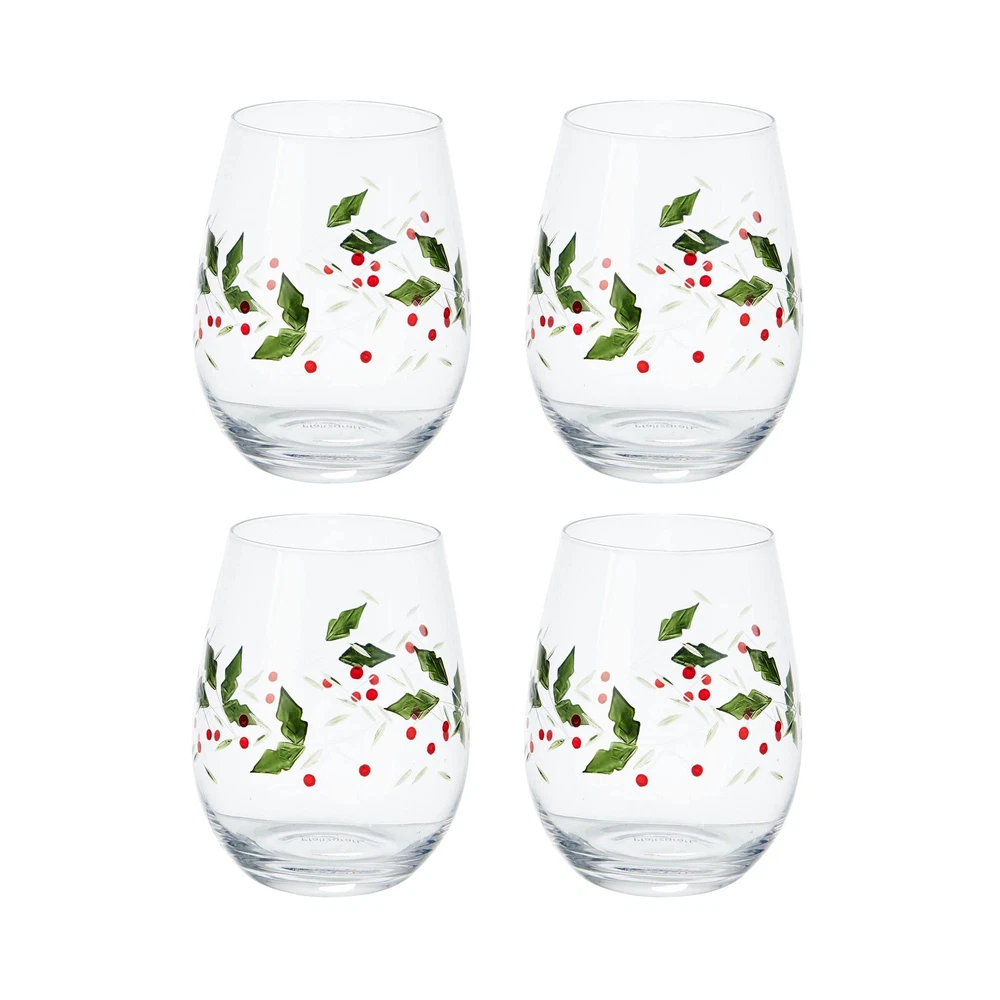 As fall turns to winter, bright holly berries make their appearance, and the Winterberry collection is the holiday classic that brings this timeless motif to life in elegantly sculpted dinnerware and serveware, beautiful glassware, and joyous giftware. This set includes 4 stemless wine glasses with the popular Winterberry motif. These sophisticated etched wine glasses are perfectly shaped for the maximum appreciation of bouquet, flavor and finish. Many experts prefer stemless glasses for the full enjoyment of either red or white wine. Create your ideal table setting with a full range of coordinating Winterberry dinnerware and serveware. This product is not dishwasher safe. Hand wash with warm water and a mild detergent. This set includes 4 stemless wine glasses with the popular Winterberry motif. These sophisticated etched wine glasses are perfectly shaped for the maximum appreciation of bouquet, flavor and finish. Many experts prefer stemless glasses for the full enjoyment of either red or white wine. Create your ideal table setting with a full range of coordinating Winterberry dinnerware and serveware. This product is not dishwasher safe. Hand wash with warm water and a mild detergent.