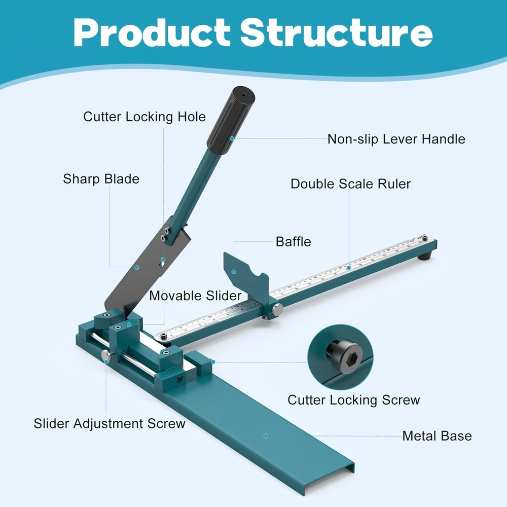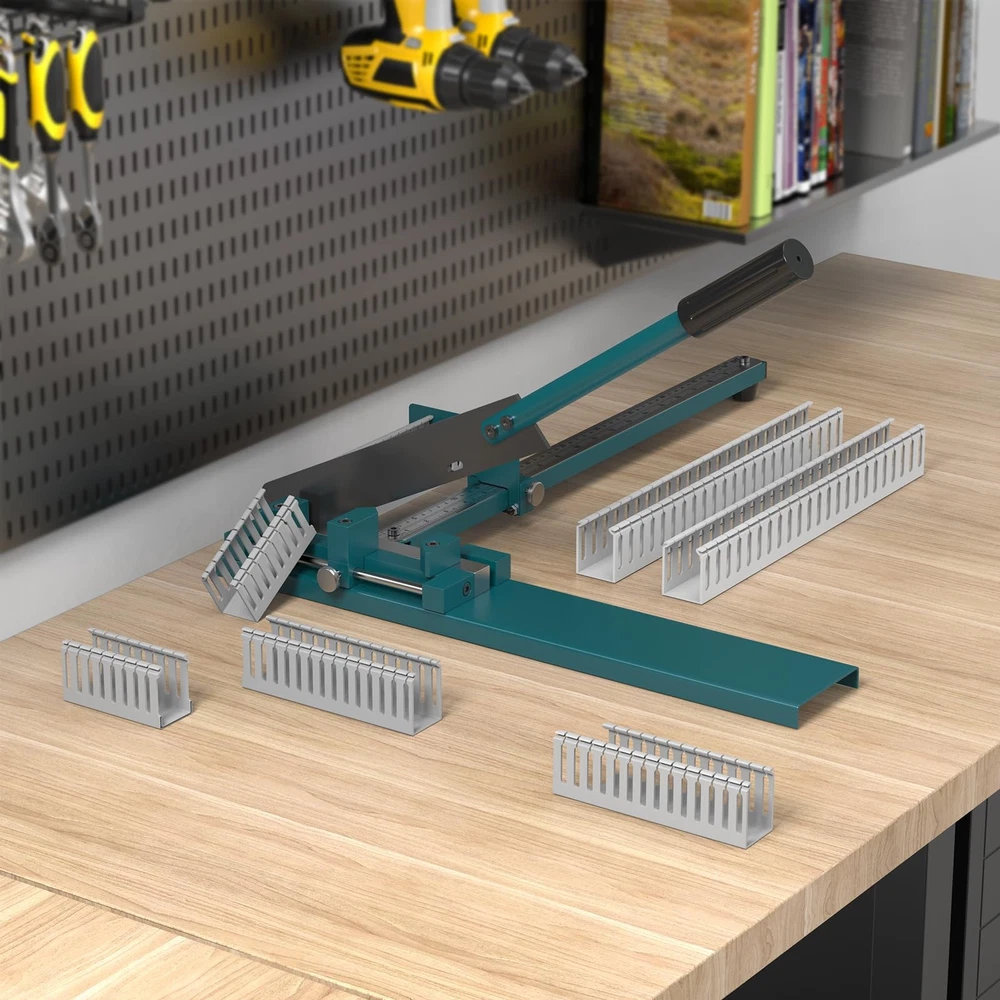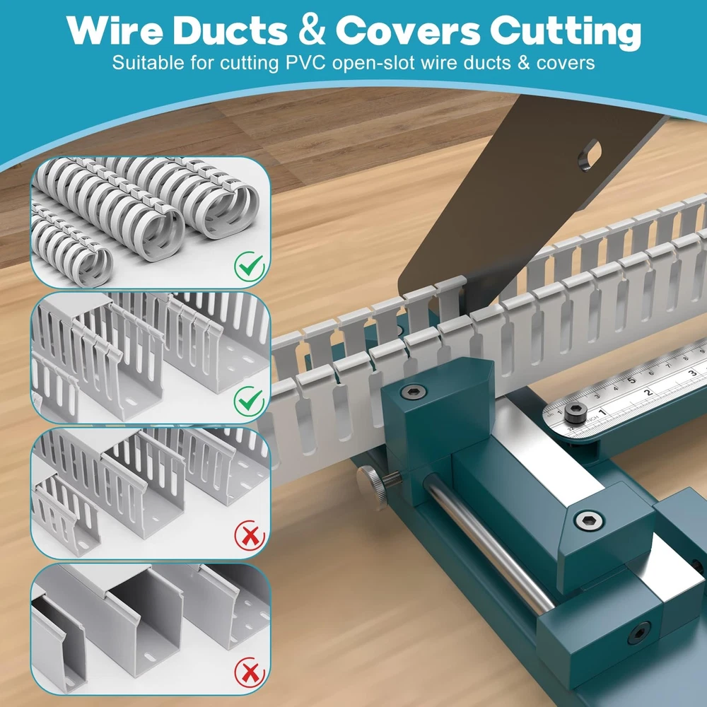 Wire Duct Cutter, Manual PVC Trunking Cutter Tool, Plastic Wiring Duct Cutting Machine for Open Slot Wire Duct and Cover Cutting, 45°/ 90° Angle Adjustable with Double Scale Ruler About this item 1、【Professional Wire Duct Cutter】- wire duct cutter is exclusively designed to cut open-slot PVC wire ducts and the their corresponding covers, which is widely used by electricians in retrofitting & managing power cables, wiring industrial appliances, and installing residential wiring systems. (Note: Not compatible with half-closed or fully-enclosed wiring ducts of other materials.) 2、【Support Multi-angle Cutting】- The 2 fixed trapezoidal blocks and the movable pentagonal slider on the PVC trunking cutter form a 45°or 90°angle directly to each other. So that the wire duct cutter can achieve 45°/90° angle cutting at the same time, which perfectly solves the splicing problem when the wire ducts need to be installed in the corner. 3、【Adjustable Cutting Width & Length】- The wiring ducts cutter comes with a dual-scale ruler (Max scale value: 20"/50 cm), which makes it convenient for users to measure the length of the PVC trunking ducts. Besides, the cutting width could also be adjusted up to 4"/10 cm by moving the slider. So that users could directly cut the cable ducts to the desired specifications without secondary trimming. 4、【Strong & Durable】- The 10.4" long blade is made of premium quenched steel material, not only maintaining the blade sharpness and wear resistance for a long time, but also achieving fast cutting with no burr on the cutting edges. Thanks to the ergonomic design of the non-slip, lever handle,cutting PVC wire duct becomes effortless and time saving. 5、【Blade-locking Design】- Features innovative blade-locking safety design. By tightening the blade-locking screw, operators can prevent the sharp blade from shifting while carrying the wire duct cutter, or secure & hide the sharp blade when the PVC trunking cutter is not in use, thus protecting the user from accidental cuts by the blade and ensuring safe operation. Product Description Wire Duct Cutter, Manual PVC Trucking Cutter Tool, Plastic Wiring Duct Cutting Machine for Open Slot Wire Duct and Cover Cutting, 45°/90°Angle Adjustable with Double Scale Ruler On Oct 28, 2025 at 09:30:04 PDT, seller added the following information: On Feb 15, 2026 at 08:56:36 PST, seller added the following information: