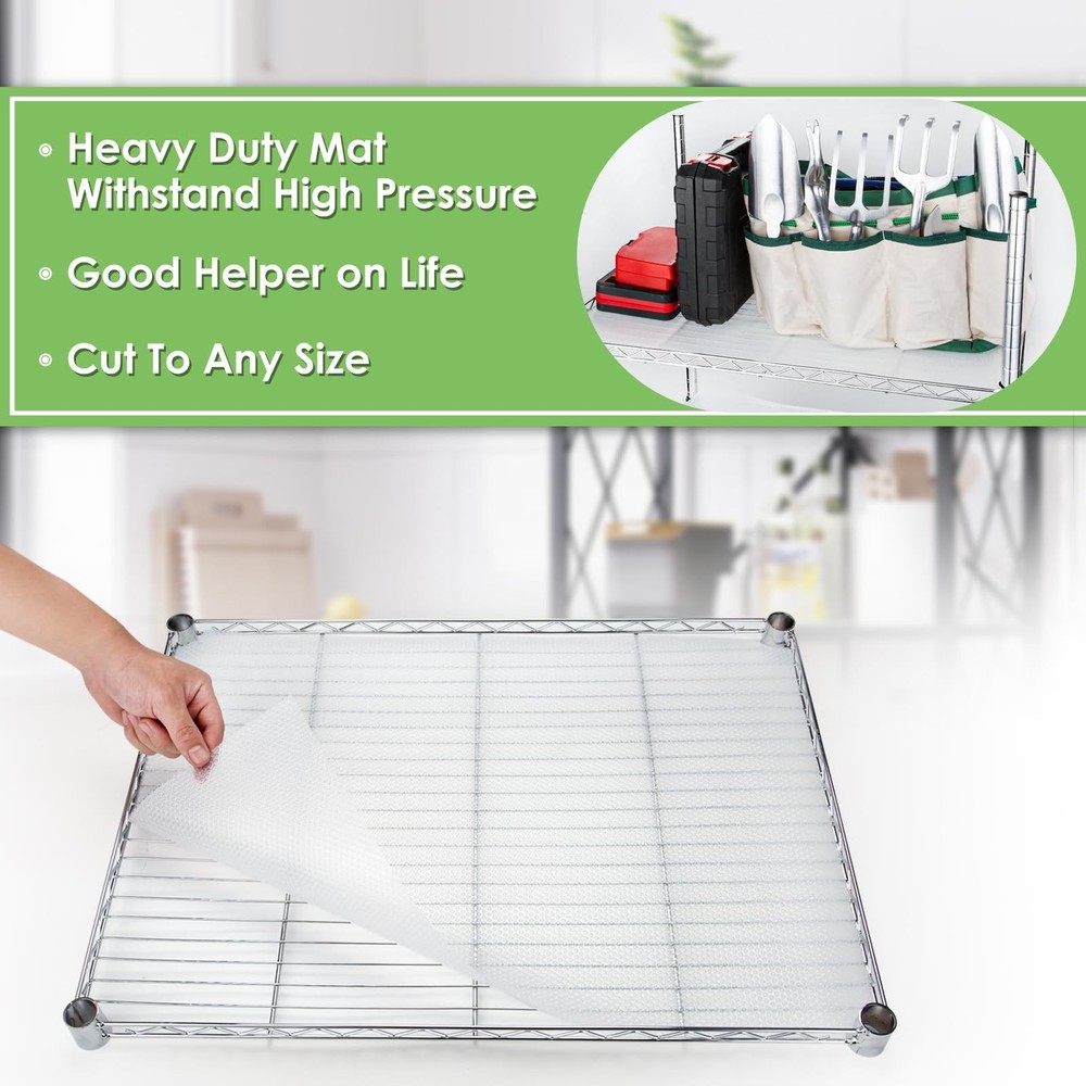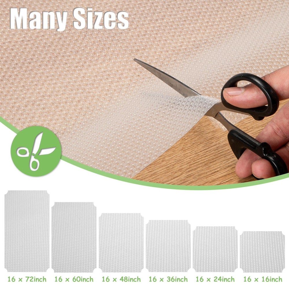 Wire Shelf Liner 16x197'' Clear Shelf Liner Kitchen,Cabinets,Drawer Liner, Cupboard, Under Sink, Pantry,Non-Adhesive Liner,Stain-Proof Shelf,1.2mm Thicken/Waterproof/Anti-Slip Liners Product Details Color: Clear Size: 16"W x 197"L Brand: AMZABBY MPN: Shelf Liner16 EAN: 7750397809757 UPC: Does not apply Brand: AMZABBY Color: Clear Material: Plastic Product Dimensions: 197"L x 16"W Recommended Uses For Product: 1.2mm,Shelf Special Feature: Keep fresh, Storage, Slip Resistant, Clean, Non-Adhesive Theme: Food Pattern: Fruit Product Care Instructions: water clean Number of Items: 1 Brand: AMZABBY Color: Clear Material: Plastic Product Dimensions: 197"L x 16"W Recommended Uses For Product: 1.2mm,Shelf Special Feature: Keep fresh, Storage, Slip Resistant, Clean, Non-Adhesive Theme: Food Pattern: Fruit Product Care Instructions: water clean Number of Items: 1 Number of Pieces: 1 Size: 16"W x 197"L Is Stain Resistant: Yes Manufacturer: AMZABBY Unit Count: 21.88 Square Feet Item Weight: 1.98 pounds Country of Origin: USA Item model number: Shelf Liner16 Date First Available: August 20, 2022 HIGH QUALITY MATERIAL:The AMZABBY wire clear shelf liner are made of food grade EVA material with BPA free. which is durable and reusable. Wire Shelf Liner can directly contact food.convex dots on top and smooth bottom help to prevent movement for fragile. MULTI USE LINER:Non adhesive shelf liner is great for refrigerator mats to keep the fresh of food and fruits.also can be kitchen cabinet liner,drawer liner,wire shelf liner,cupboard liner,shoe shelf liner,glass shelves liner etc. Its perfect decor for your home and protect furniture from other daily wear and tear. EASY TO CUT:Drawer liner comes in the most popular pre-cut sizes for easy installation.Including 1 roll liner with16 inch x 197 inch size, Kitchen cabinet liner can be easy cut to any size or shape with scissors. Glass shelves liner raindrop arrangement design can help you to cut into a straight line without tools. EASY TO CLEAN:AMZABBY wire Shelf Liners is washable, reusable and fast to dry.you can wipe the dirt with a damp cloth.or wash cupboard liner with water and then dry naturally in the shade fast to dry. doesn't leave any stain marks.doesn't leave any stain marks. NON ADHESIVE LINER:Non-Adhesive shelf liner design.Without curl edge when used in Kitchen drawer liner. And reusable.