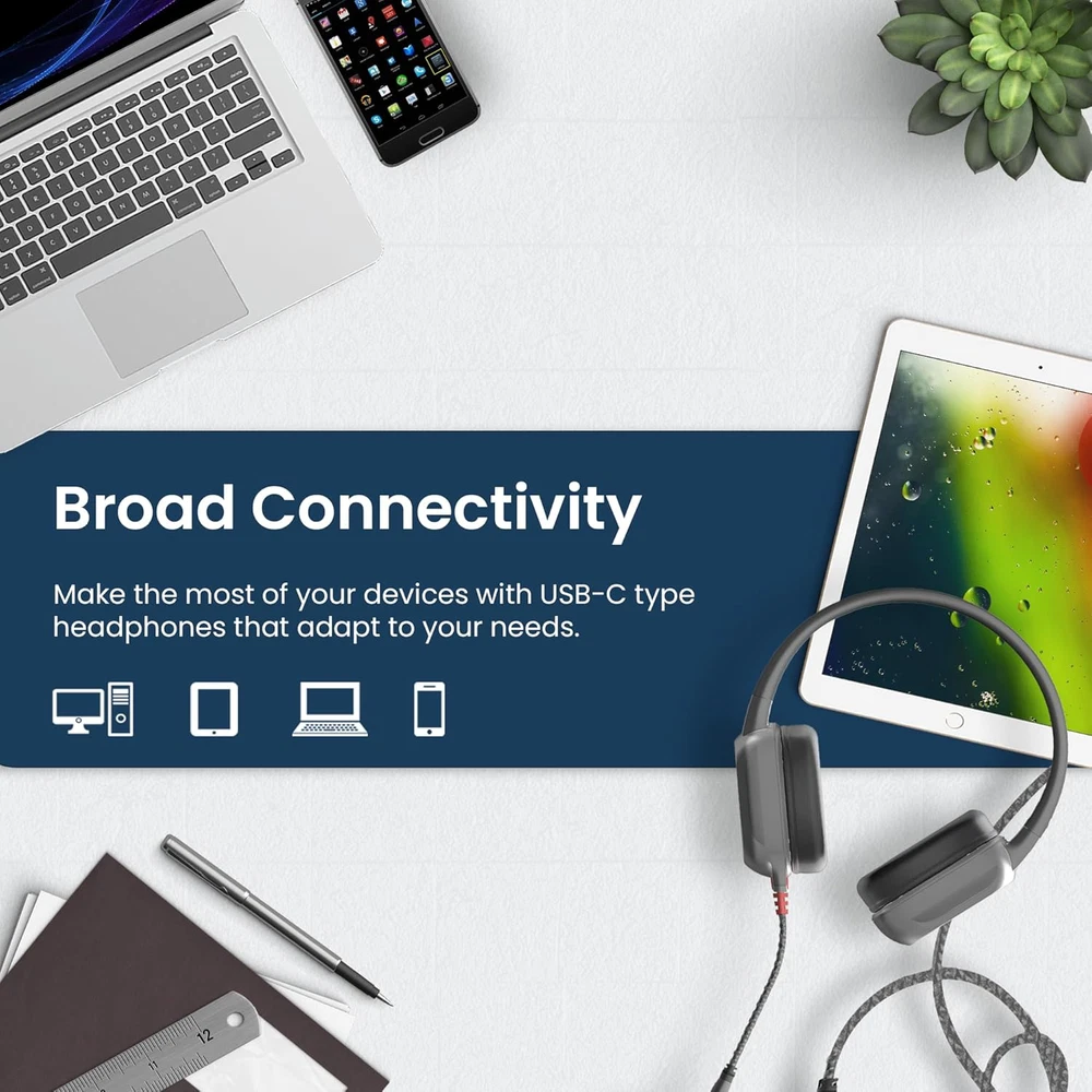Wired Headphones with Mic | USB C On-Ear Rugged 2 Adjustable Headphones with Lon