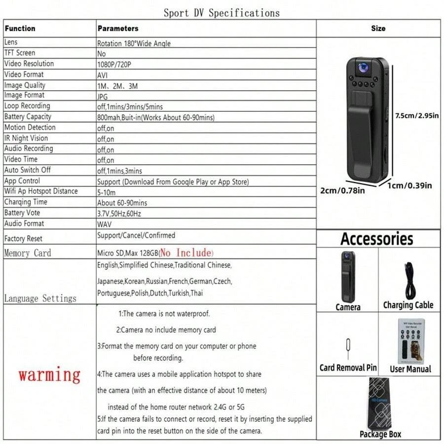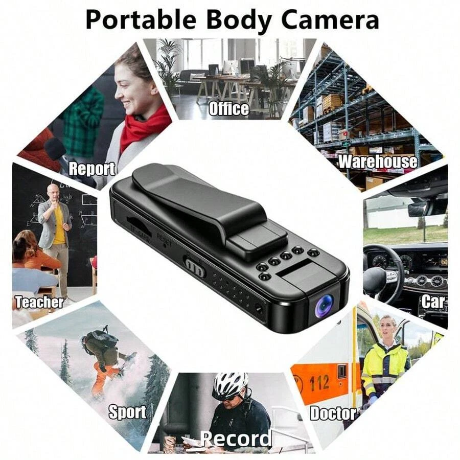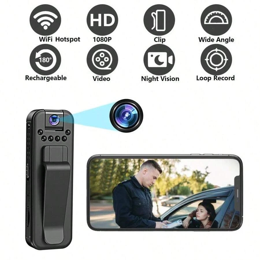 Wireless 1080P Vlog Body Camera, Wearable Body Camera with IR Night Vision and 180° Swivel Lens, WIFI Portable Sports DV Camera, Clip-on Pocket Camera for Outdoor Sports, Skiing, Cycling and Hiking