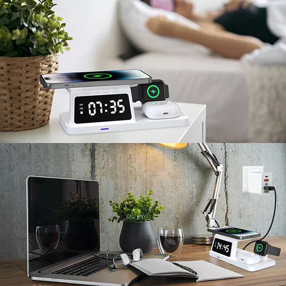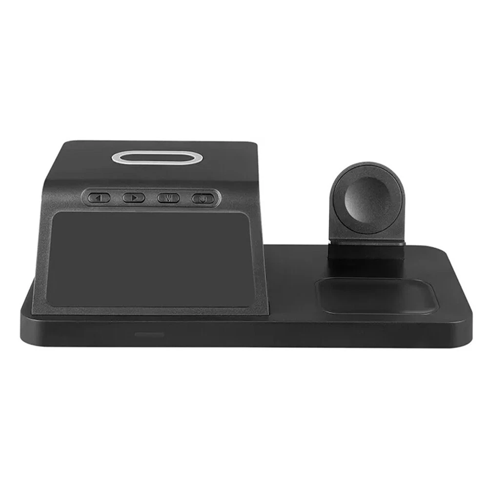 Picture Gallery Description Features: [5-in-1]:The 5-in-1 wireless charger can wirelessly charge up to 3 devices, you can also connect 1 device for wired charging. It includes night light and alarm clock. LED Clock Display】:Equipped with time display and alarm clock, this charger is very useful to keep on your desk. [Widely Used]:The 5-in-1 charging cradle can be used in the bedroom, kitchen, office and anywhere you like. 5-in-1 Design】: The wireless charging station can charge your phone, Apple Watch, and headphones at the same time, leaving your desk and bedside table tidy and organized without messy cords. For better charging experience, please use QC 3.0 power adapter (QC 3.0 adapter not included). 【Safe Charging】:The cordless phone charger provides temperature control and voltage protection as well as short circuit prevention to ensure safe and stable charging. This wireless charger provides you with a safe experience. Anti-slip silicone pads on the base and bottom protect your device from scratches and slips while charging. 【Universal Compatibility】:Apple charging cradle for most Apple devices. Compatible with iWatch series 8/7/6/SE/5/4/3/2/1; Compatible with AriPods Pro/3/2/1; Compatible with iPhone series. (Not compatible with Samsung watches). Compatible with iPhone 8/X/11/12/13/14 series, Samsung S10/S20/S21/S22; Note8/10/20/21 series; other Samsung series that support wireless charging and all other cell phone brands that support wireless charging. Attention: 1.For a fast charging experience, please use a 9V-3A or 12V-2A power adapter (adapter not included). 2.The watch charger is only for Apple Watch, it can't charge Samsung Watch or other brand watches. Specifications: *Product name: 5-in-1 wireless charger *Mobile phone output: 5W/7.5W/10W/15W *Watch output: 2.5W (max) *Headphone output: 3W (max) *Charging distance: 1-8MM *Charging efficiency: ≥75% *Product Material: ABS *Product color: black Package List: 1*5-in-1 wireless charger 1*Type-C cable 1*User Manual Attention: 1.Not included not include the power adapter! 2.Item is limited to charger only, excludes headphones, watch! 3. Due to manual measurement, please allow a difference of 1 cm error! 4. may vary according to light color or monitor tint! Shipping Policy Payment Policy Return Policy Shipping Policy 1. We only ship to the confirmed address provided by eBay. Please make sure your ebay address is 100% matches the address you would like us to ship to. If not, please let us know before we sent you the package, or we will not be responsible for any loss. Hope you could understand. 2. Orders will be processed instantly and dispatched within 1-2 business days except hoilday, so we do NOT accept any email/message note after you place orders. Payment Policy We accept PayPal only. We only ship item to your PayPal verified address. Please pay attention that import duties, taxes and charges are not included in the item price or shipping charges. These charges are the buyer's responsibility. Please check with your country's customs office to determine what these additional costs will be prior to bidding/buying. Return Policy 1. We offer 60 day money back or replacement guarantee. In addition, it allows customers to return new and unused products in their original factory condition for any reason within 60 days from the date of purchase. 2. Although we test each item and they are packed professionally, few item (less than 0.1%) might be damaged during the shipping. Please feel free to contact us within 4 days after you receive your package about replacement. 3. If you don't receive items over 35 days, please make sure to contact us before leaving any neutral or negative feedback. We'll try our best to help you solve the problem. If we authorized the return, customers will get an email with instructions for returning the item. Email will be replied within 24 hours on Chinese business hours. On Dec 22, 2024 at 19:14:44 PST, seller added the following information: