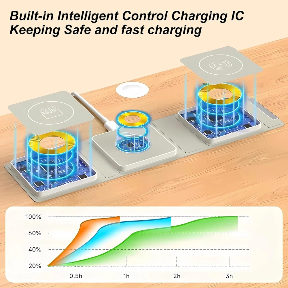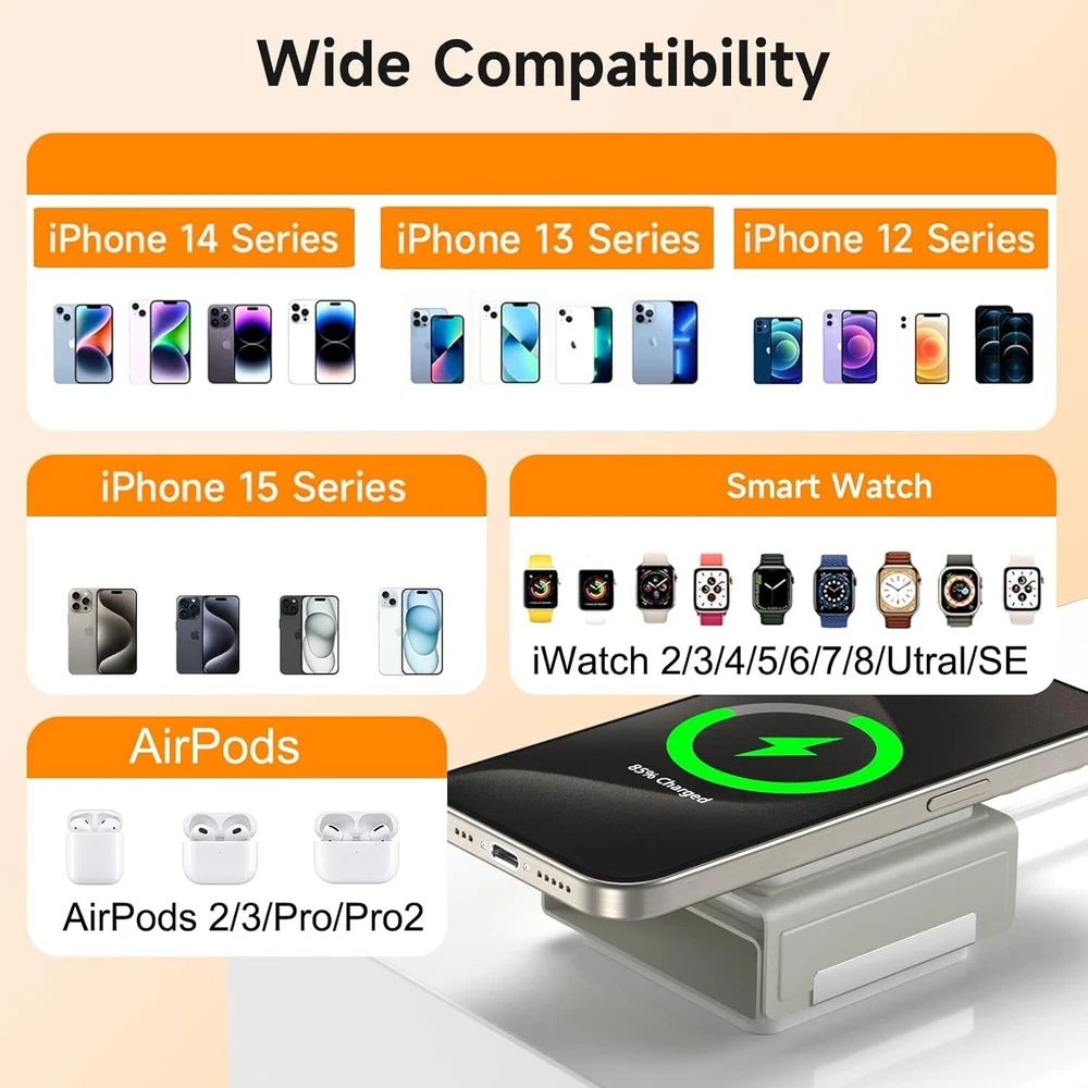 -Brand New - Never Used - Questions: Feel free to ask any Questions - BOX: Never Opened - DESCRIPTION: [3 in 1 Wireless Charger] This wireless charger is Qi compatible and Mag safe & with 15W for Phones + 3W for earphone +2.5 W for watches. 3-in-1 wireless charging pad is your key to gaining freedom from individual charging cords, providing you with a convenient and hassle-free charging experience. [Stable and Rapid Charging] You can simply snap your charging device onto charging pad, which will hold your phone at any positions strongly. Coming with an 18W adapter and a 4 ft cable, allowing for quick charging of your smart devices; enough to fast charge three devices at the same time at ultra-speed. (Must be connected to external power supply for use.) [An Ideal Travel Companion] The wireless charging station can be folded up to the HALF size of your phone, thin and light at your fingertips, making it for easy carrying in a pocket, backpack, suitcase, or laptop bag. [Charging with Peace of Mind] To ensure the safety of your devices, Zazum 3 in 1 wireless charger comes with intelligent protection technology, including temperature control, overcurrent protection, overvoltage protection, and undervoltage protection, your charging devices are safeguarded while enjoying fast and efficient charging [One for All Your Charging Needs] With just one portable wireless charger, you can conveniently charge multiple devices, at one spot. Compatible with iPhone 15/15 Pro/ 15 Pro Max 14/14 Plus/14 Pro/14 Pro Max/13/13 Pro/13 Pro Max/13 mini/12/12 Pro/12 Pro Max/12 mini, Apple iWatch Ultra/SE/8/7/6/5/4/3/2, AirPods 3/2/Pro2/Pro1 - OFFERS: Reasonable offers are considered, LOWBALLERS, Best price and Lowest askers will be ignored - all sales final/no refunds/ no exchanges/ no returns - Disclaimer: I do not own the brand's trademarks, logos, pictures, or products posted. I do not intend to infringe on copyright. I find such content available on the internet. Contents are considered fair use. - Wireless Charging Station for Foldable Magnetic Wireless Charging Pad for Multiple Devices Fast Charging,Wireless Charger for iPhone15 14 13 Pro/Apple Max Plus/i-Watch/Airpods