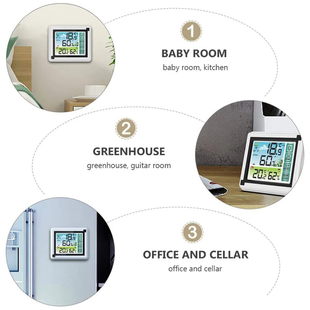 Other | | | | | | Wireless Color Screen Indoor Outdoor Temperature Humidity Thermometer Meter 35 < < > > < < < < < < < < > > > > > > > > Specifications: The thermometer has the function of storing the highest and lowest temperature and humidity. Historical temperature and humidity data can be viewed. It can be connected to 3 outdoor units at most. There is a bracket on the back of the host, which can stand in a horizontal position. With backlight, turn off the backlight automatically after not working for 10 seconds. The XP4 outdoor waterproof unit can be hung with holes or stand on a horizontal surface. Item Name: Thermometer Hygrometer Material: Plastic, Electronic Component Indoor Temperature Range: -4 Fahrenheit Degree-158 Fahrenheit Degree (-20 Degree Celsius-70 Degree Celsius) Outdoor Temperature Range: -40 Fahrenheit Degree-158 Fahrenheit Degree (-40 Degree Celsius-70 Degree Celsius) Humidity Range: 20%-95% Comfort Display: Dry, Comfortable, Wet Temperature Display Unit: Degree Celsius/Fahrenheit Degree Optional (Default is Degree Celsius) Temperature Resolution: 0.1 Degree Celsius/Fahrenheit Degree Humidity Resolution: 1% Refresh Rate: 10 Seconds Error: Temperature Plus or Minus 1 Degree Celsius, Humidity Plus or Minus 5% Wireless Receiving Range: 60m/197Inch RF Wireless Frequency: 433MHz Power Supply: 1 x AAA Batteries (Not Included) Features: Color Screen, Accurate, High Sensitivity, Easy to Operate, Thermometer Hygrometer Tool Host Size: 114mm x 24mm x 96mm/4.49" x 0.94" x 3.78" (Approx.) Transmitter Size: 100mm x 35mm x 20mm/3.94" x 1.38" x 0.79" (Approx.) Notes: Due to the light and screen setting difference, the item's color may be slightly different from the pictures. Please allow slight dimension difference due to different manual measurement. 1Pcs The exquisite workmanship and simple design are very popular.. The exquisite workmanship and simple design are very popular. The high quality of the product is the best guarantee for you.. The high quality of the product is the best guarantee for you. Package Includes: 1 x Host 1 x Transmitter 2 x Pearl Cotton Bags 1 x User Manual 1 Set of Explosion-proof Screw 3Pcs Package Includes: 1 x Host 3 x Transmitters 4 x Pearl Cotton Bags 1 x User Manual 3 Sets of Explosion-proof Screws Payment Shipping Return Contact Us 1. We acceptPayPal,Credit card,Debit card,Apple Pay,Google Pay ect as payment. 2. Please be sure your shipping address is correct before make a payment. 1. We ship to your eBay or Paypal address. Please make sure your eBay and Paypal address is correct before you pay. 2. Items will be shipped within 1-7 business days when we received payment. 3. Delivery time depends on destination and other factors. 4. International buyers please note: a. Import duties, taxes and charges are not included in the item price or shipping charges. These charges are buyer's responsibility. We will try our best to reduce the risk of the custom duties. b. Please check with your country's customs office to determine what these additional costs will be prior to buying. 30 DAY RETURN POLICY Customer Satisfaction is our main goal, all items are quality checked prior to being listed and sent out. Please contact us prior to leaving any Negative Feedback and allow us to make things right! If you not satisfied with it please include the original packaging and return form & tracking number otherwise the return may take longer to process the refund. Once we have received the item and inspected it we will issue the refund or resend within 1-7 business days. Please contact us in time if any enquriy under any circumstances. We greatly appreciate your positive feedback and we'll do the same to you. We care about our valued customers, and will always try our best to help you, if you have any problems. Working time: GMT+8 / 9:00-18:30 in normal we will reply you in one working day.