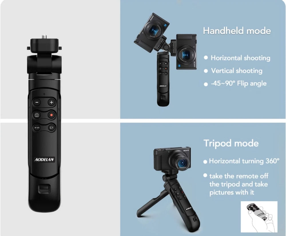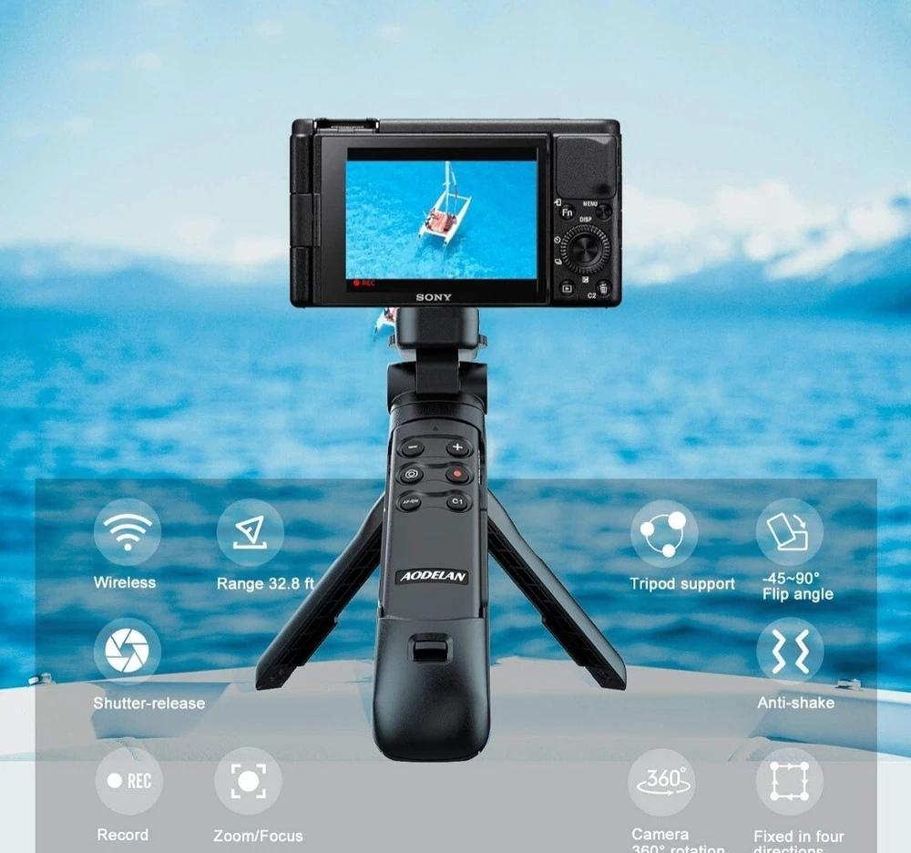 Enhance your vlogging experience with this wireless shooting grip tripod, designed for Sony cameras. The remote control feature allows for easy and convenient operation, while the device-specific battery type ensures long-lasting use. This unit is compatible with various Sony models, including the ZV-E10, ZV-1F, ZV-E10 II, a6100, a6400, and a6600. The aodelan brand brings you this high-quality remote control, perfect for camera control and vlogging. With its wireless connectivity feature, you can easily control your camera from a distance without any hindrance. This unit is sold as one, and is an essential accessory for any vlogger or photographer.