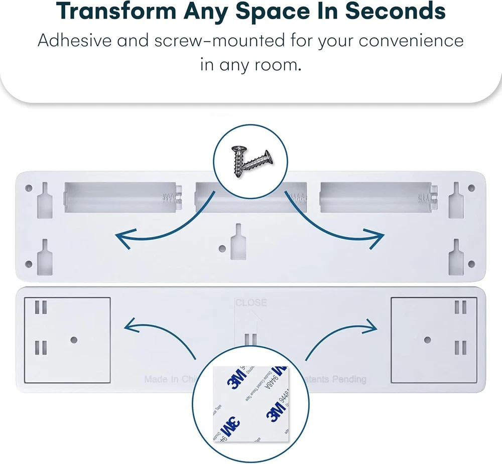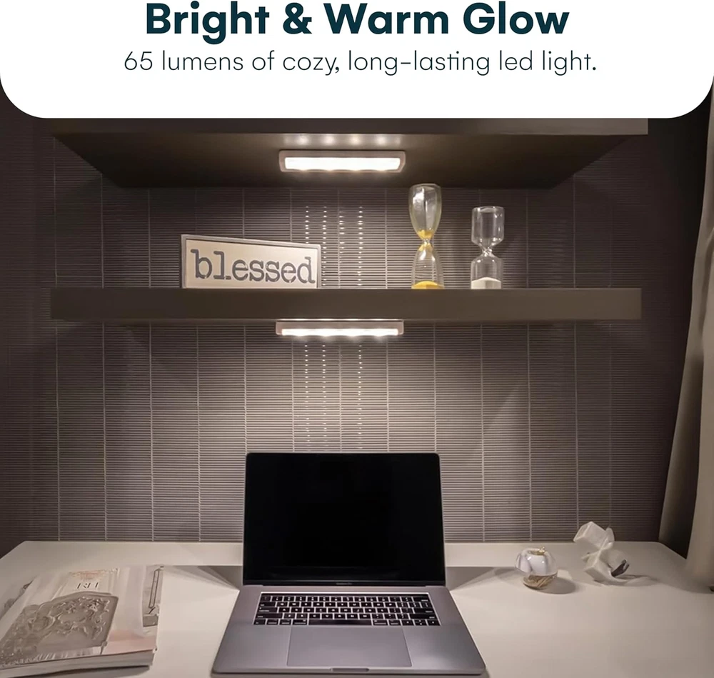Quick and Easy Installation: Includes heavy-duty adhesive tape and screws for versatile mounting options; stick up lights work in kitchens, closets, pantries, garages, and more Simple Tap Light Function: On and off tap light makes it easy to use; touch the lens to activate, ideal for under counter and cabinet lights for kitchen, bathroom, or closet spaces Bright and Long-Lasting: Emits 65 lumens with a warm white 3000K glow; the LED light bar provides bright illumination without the need to replace LEDs over time Ultra Thin Design: At only 1 inch thick, this battery LED light fits seamlessly under cabinets, on bookshelves, or in closets; blends into any decor without being intrusive Battery Powered Convenience: Operates on 3 AA batteries (not included); long-lasting brightness and efficiency make it ideal as a battery-operated push light for daily use Product Description Brilliant Evolution Battery Operated Ultra Thin LED Bar Light The battery operated ultra thin LED bar light can quickly and easily light up any area. This bar light is bright at 65 lumens and is perfect as under cabinet lights, kitchen lights and closet lights. The battery powered light produces a warm white glow (3000K) for beautiful LED under cabinet lighting or kitchen lighting. Easily mount the wireless LED light anywhere with adhesive tape or screws (both are included). Then simply press the tap lens on the under cabinet light to turn it on/off. The Brilliant Evolution LED battery light has a run time of over 100 hours, using 3 AA batteries (not included). The wireless LED bar light offers a versatile lighting option. The LED bar light is not only an aesthetically pleasing lighting solution but also a budget friendly one. . Bright and Beautiful The LED bar light is bright at 65 Lumens. This small, but powerful, battery powered LED light will make your dark areas both bright and beautiful. Great as under counter LED light for kitchen areas or as a cabinet LED light in your house, the Wireless LED bar light will brighten your world. Sleek and Powerful The LED bar light is less than 1 inch thick. Press the tap lens to turn the light on/off. The light bar mounts with screws or adhesive tape (both are included). Battery Operated The LED bar light operates on 3 AA batteries (not included) and has a run time of over 100 hours. The run time is 4 times longer than other lights.