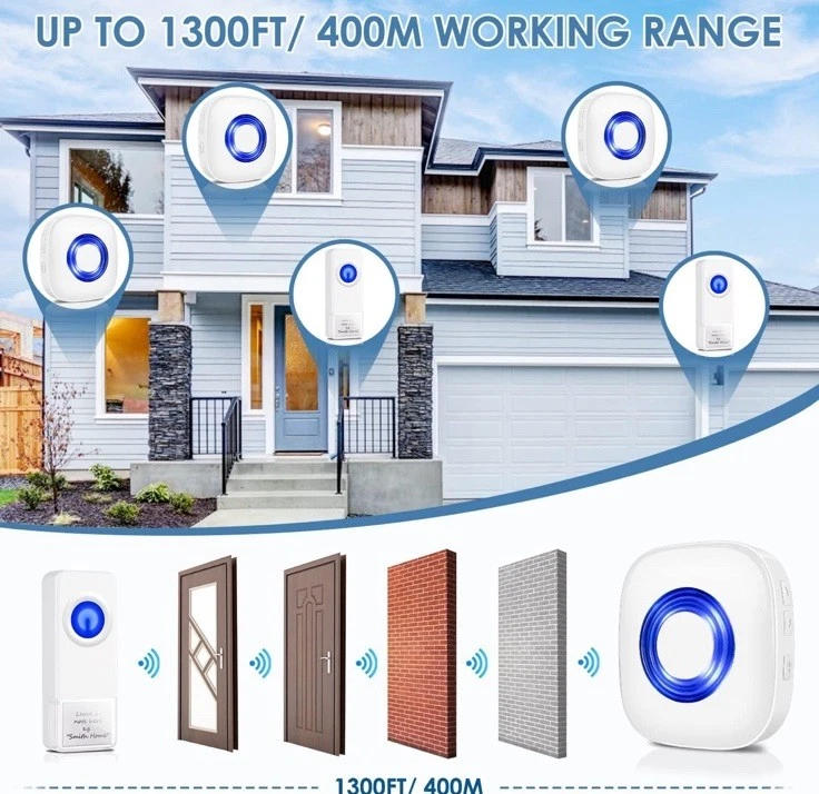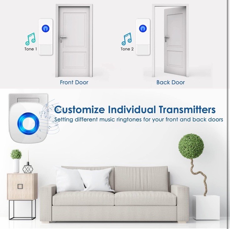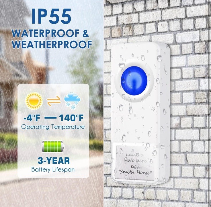 Wireless Plug-In Waterproof Doorbell with Long Range Receiver and Adjustable Volume Chime