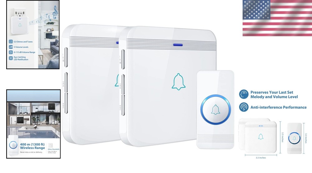 Wireless Doorbell - Waterproof with 1300 Ft Range and 52 Custom Melodies ‹ › ‹ › ‹ › ‹ › ‹ › ‹ › ‹ › ‹ › ‹ › Wireless Doorbell Your home deserves the best, and our Wireless Doorbell is designed to deliver both elegance and functionality with a perfect blend of innovation and style. Key Features: High Performance Transmitter: Ultra-low power consumption with a lithium battery boasting an impressive 3- lifespan. Weather Resistant: dustproof and waterproof design withstands harsh weather, operating flawlessly from -4 °F to 140 °F. 1300 FT / 400 M Wireless Range: Two plug-in receivers ensure you never miss a visitor, offering coverage across your home without interference. 52 Beautiful Melodies: Choose from 52 delightful chimes played through a rich 40 mm stereo speaker, with 5 adjustable volume levels peaking at a powerful 115 dB. Memory Function: Automatically retains your last melody and volume settings after a power outage—convenience at its finest! Easy to Set Up: Installation is effortless with included screws, anchor plugs, a key, and an adhesive patch, plus additional receivers can easily extend your coverage. Why Choose Our Wireless Doorbell? Imagine a doorbell that not only complements the beauty of your home but also provides you with unparalleled convenience. Our Wireless Doorbell combines durability and elegance, ensuring you are always aware of your visitors with beautiful melodies resonating through your home. Say goodbye to missed guests and embrace the effortless charm this doorbell brings. This is more than just a doorbell; it’s a statement piece that enhances your home’s ambiance while ensuring seamless communication. Elevate your entrance—order your Wireless Doorbell today! Shipping Free & Fast Shipping - We offer free shipping to most of the USA with a normal delivery time of 3-7 days. However, due to the current situation, additional delivery time (up to 3 weeks) may be required for some items. Alternative Carriers - We may use alternative carriers (e.g. USPS, FedEx, UPS, etc.) to ensure your package arrives safely and on time. Due to the use of multiple carriers, we are unable to provide a tracking number automatically. Handling Time - Orders are processed and shipped within 1-2 business days of receiving cleared payment. Shipping Restrictions - Shipping to Alaska, Hawaii, Puerto Rico, Guam, and other US territories may incur shipping charges or delivery restrictions. Please contact us before ordering, or your order can be refunded/cancelled. State Restrictions - There may be restrictions based on your state of purchase. For example, certain items may not be shipped to California due to state regulations. Contact for Tracking Updates - If you require tracking updates or have any concerns about the delivery of your order, please feel free to contact us, and we will be happy to assist you. Return 30-Day Hassle-Free Returns - We want you to be completely satisfied with your purchase. If you are not, you can return the item within 30 days of receiving it for a full refund or exchange. Easy Return Process - To start a return, simply contact us and we will provide you with a prepaid return shipping label and detailed instructions. Restocking Fee - There are no restocking fees for returns. However, the buyer is responsible for return shipping costs if the return is not due to a seller's error. Refund Processing Time - Refunds will be processed within 5 business days of receiving the returned item in its condition. Payment We accept all major credit cards, PayPal, and Apple Pay for your convenience. Your payment information is secure and encrypted to ensure a safe and seamless transaction. Please complete your payment within 3 days of purchase to avoid any delays in shipping. Feedback Your feedback is extremely important to us. We strive to provide the best products and customer service possible. If you are satisfied with your purchase, please take a moment to leave us a positive review. If you have any concerns or issues with your order, please contact us before leaving negative feedback. We are committed to resolving any problems and ensuring your satisfaction. Contact Us If you have any questions or concerns, please feel free to out to our customer support team. You can contact us through the eBay messaging system. We are available Monday to Friday, 9:00 am to 5:00 pm EST, and we will do our best to respond to your inquiry within 24 hours. Buy it now and enjoy a pleasant shopping experience! Voltage: 3 V Unit Quantity: 0.618 lb Material: Plastic Features: Waterproof,LED Flash,Memory Function,Adjustable Volume Power Source: Battery Items Included: Battery,Button,Screws,Plug-in Receiver,Transmitter,Anchor Plugs,Adhesive Patch,User Manual Suitable For: Home Type: Door Chime Connectivity: Wireless Number of Batteries: 1 Color: White Finish: Glossy Item Weight: 0.618 lb Style: Modern Button Material: Plastic Button Shape: Round Shape: Rectangle Power: 3 W Unit Type: lb