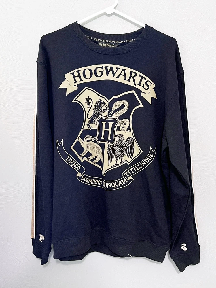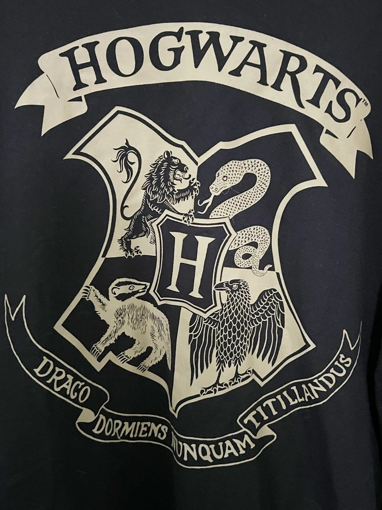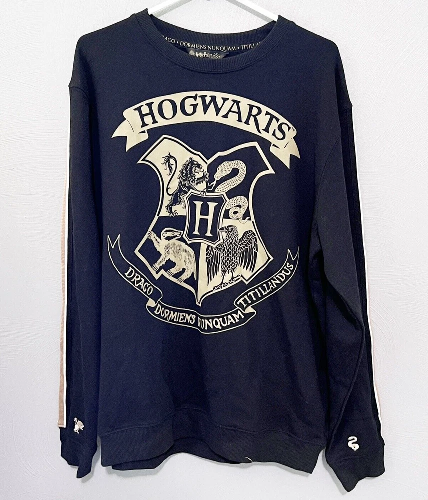 Wizarding World Harry Potter Hogwarts Mens/Womens Sweatshirt Size Large NWOT Excellent - tags removed but never worn, all house images embroidered on sleeves - graphic pristine Chest 24" pit to pit Length 29.5" from shoulder to hem