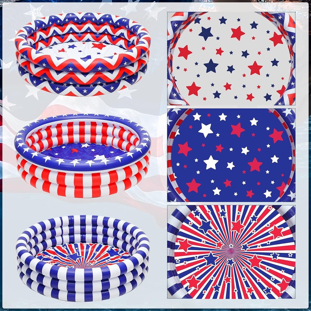 Woanger 3 Pcs Inflatable Kiddie Pools 45 x 10'' Kids Heavy Duty Inflatable Pool, Red Blue White American Flag Swimming Pool 3 Rings Blow up Water Pool Pit for Baby Toddler Summer Indoor Outdoor Party Item Description About this item Independence Day Kiddie Pool: the kiddie pool is designed with classic patriotic elements, such as stars, stripes, and colors like red, white and blue, lovely and eye catching, and can attract your friend and guests' attention Appropriate Size to Apply: the size of the baby swimming pool is about 45 x 10 inches, the size is suitable for children to apply, and Mom or Dad can company their children at the same time, please check the size to avoid misunderstanding, and it is not a life saving device and requires a guardian Stand for Long Term Usage: the small swimming pool is mainly made of quality vinyl, safe and reliable, long lasting and sturdy, the package also comes with repair patches for holes or leaks caused by accidental punctures or tears, providing you with a pleasant experience Bring You a Cool Summer: the inflatable pools will bring more fun to children in summer time, and it's a nice addition for summer backyard play; Please be careful to check under and around the pool for any pointed objects or debris that could cause stab wounds Easy to Apply: the mini pool is simple to use; It can be quickly inflated, and placed at the place you like; After use, it can be easily disassembled and stored without taking up too much space › See more product details Payment We accept payment only through PAYPAL Shipping We ship products worldwide through standard express courier service, it will reach within 7 to 10 days to abroad buyers, we ship the product after recieved clear payment and give full information about shipment to the buyer Return We accept product return within 7 to 21 days from delivery date but product should be in original position and not in damaged condition,the return shipping charges will be buyer responsibility
