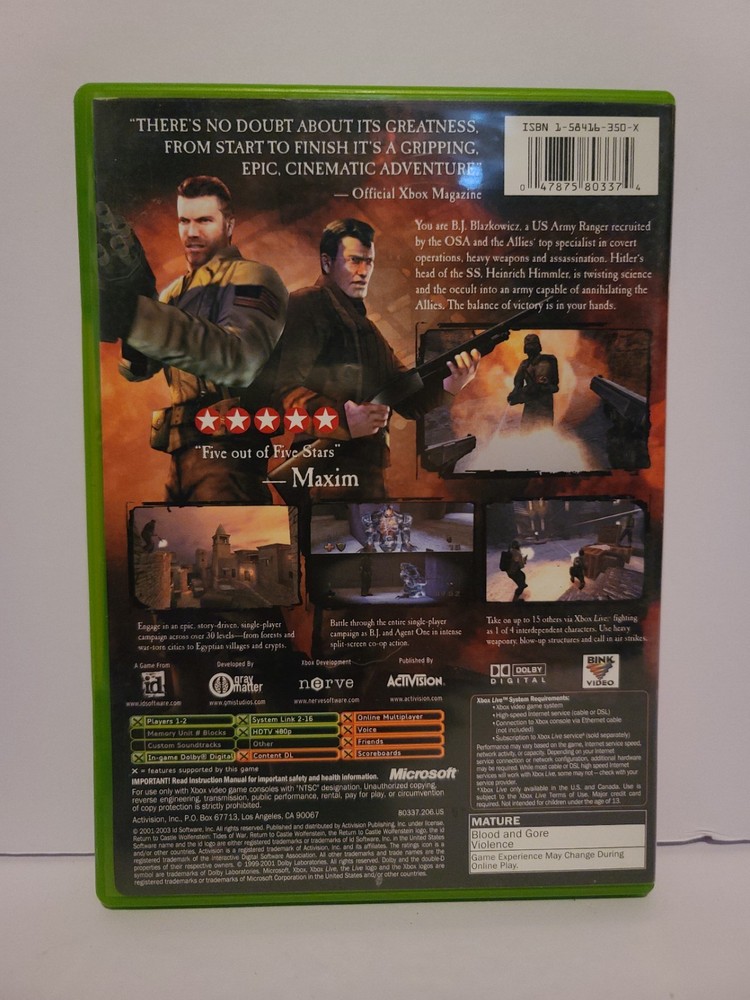 Wolfinstein Tides of War Xbox Original Complete CIB W/ Manual Excellent