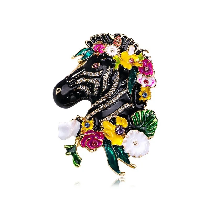 Woman Cute Zebra Animal Brooch Vintage Enamal Flower Horse Brooches Accessories