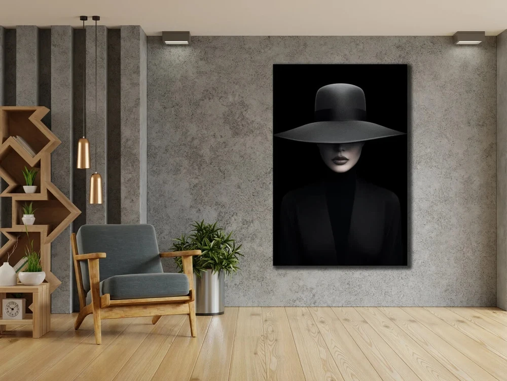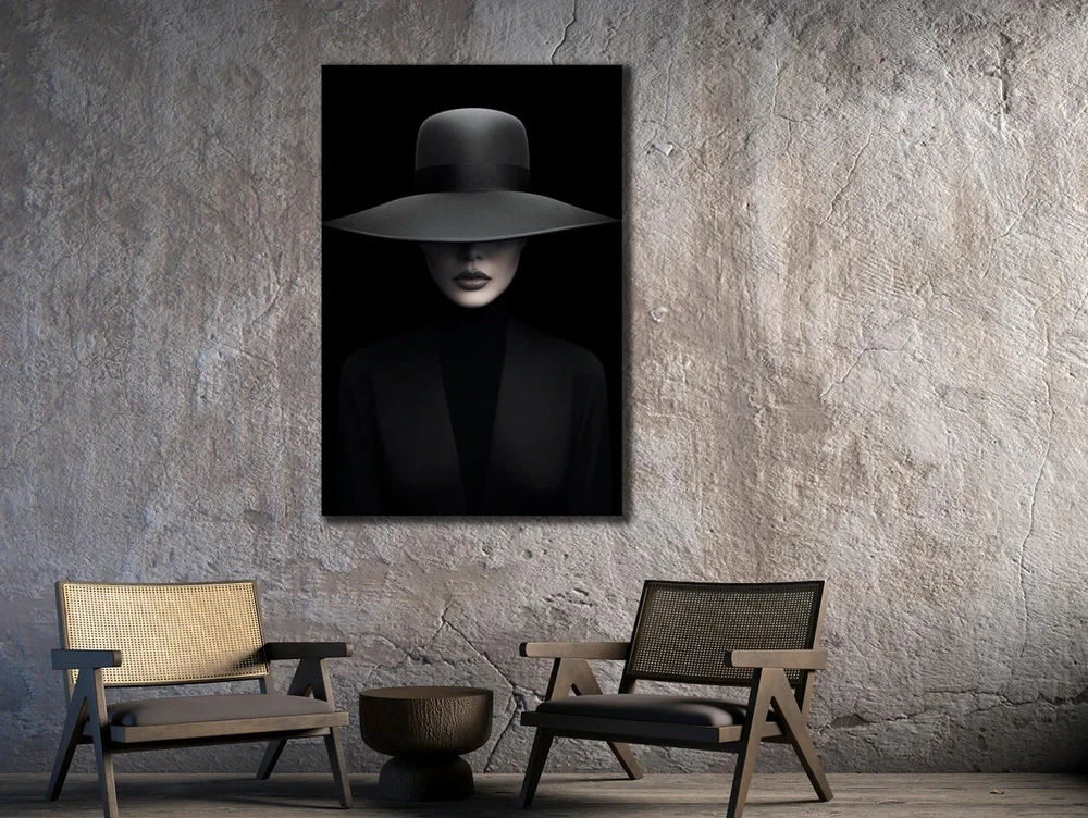Woman With Black Hat & Dress Abstract Unframed Canvas Print Australian Wall Art