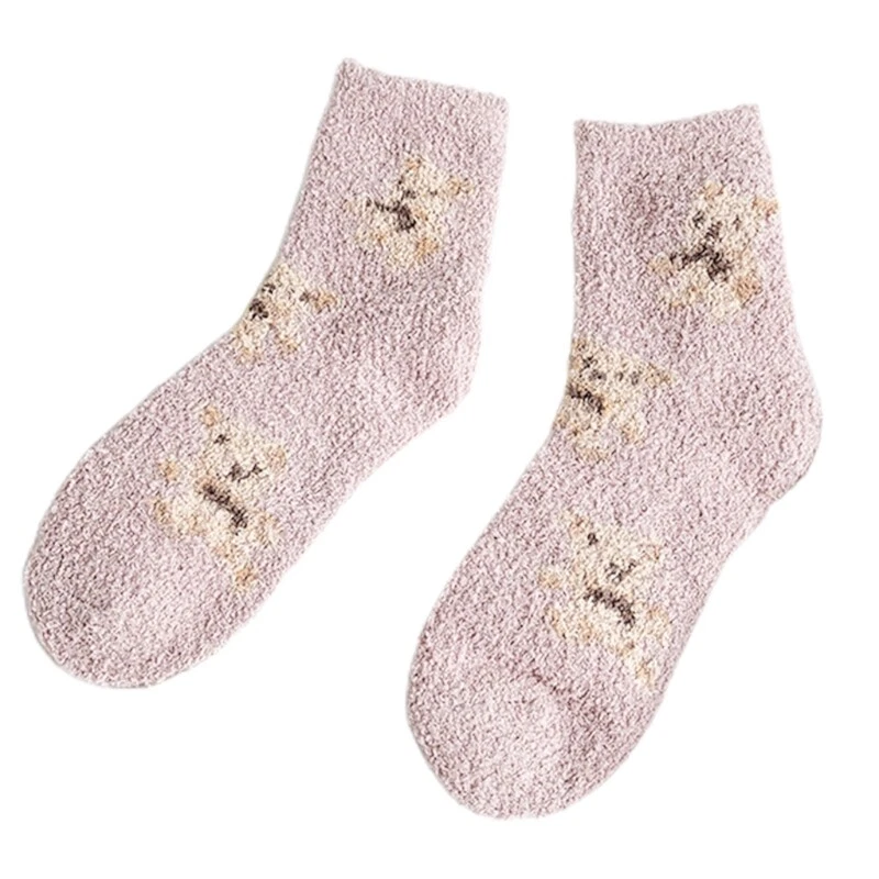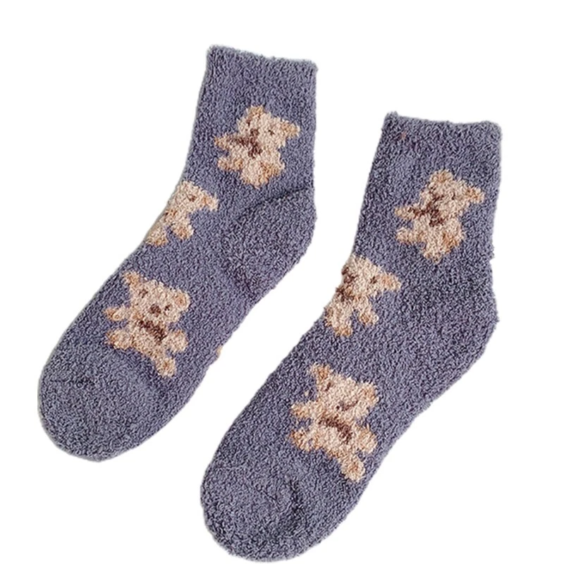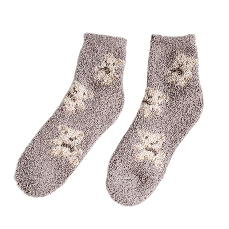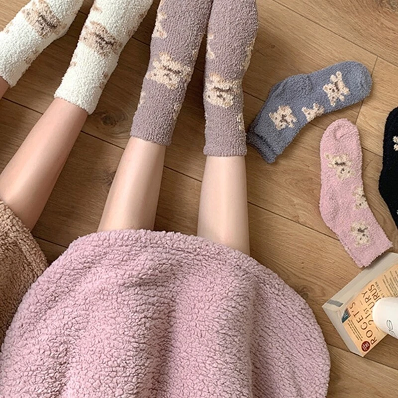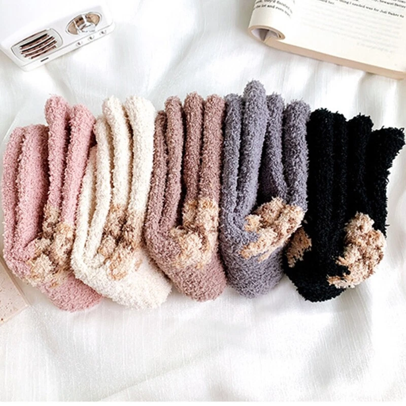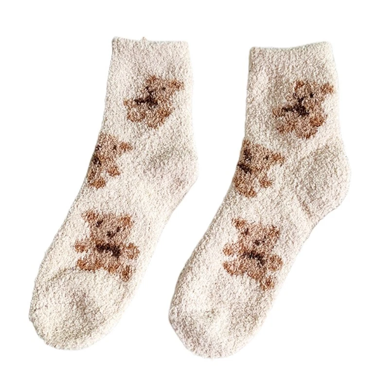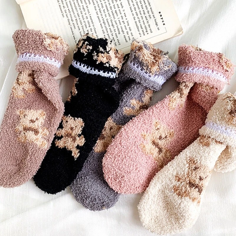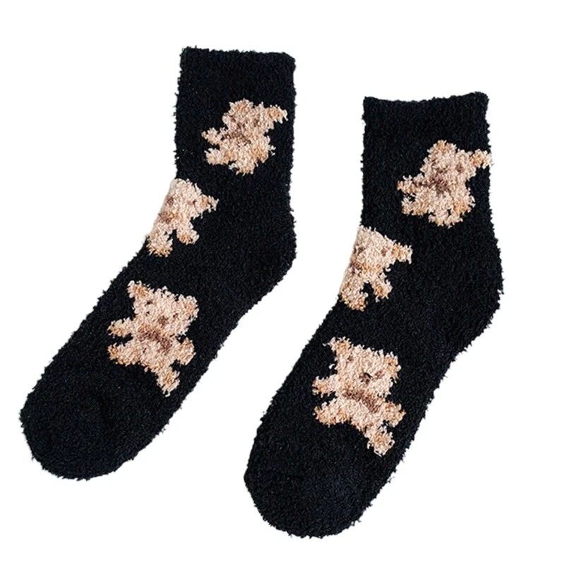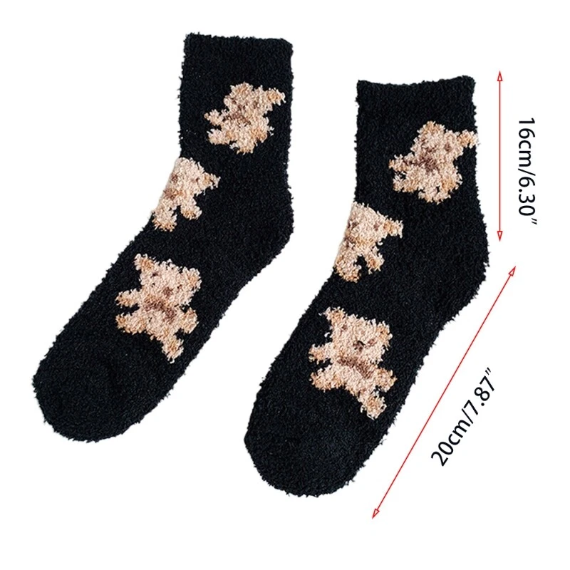brand new and high quality Features: Thicken coral lovely cartoon bear animal patterns solid color socks, size fits most. Made of high quality polyester material, super comfy, fuzzy socks, soft and comfortable to wear, thickened Warm socks that will coordinate with whatever you're wearing. Long enough to cover your ankles, no more cold ankles in this winter. Suitable for you wearing all year round, especially in fall and winter. No matter outside or inside, also daily wear and holiday, they have great usage. You can wear them as sleeping socks, outdoor socks, home socks, christmas socks, slipper socks, thermal socks, house socks in any cold weather or snow areas. pair of socks only, other accessories in the picture are not included! Specification: Material: Polyester Foot Length: app. 20cm/7.87in Tube Height: app. 16cm/6.30in Optional Color: Black, Milk Coffee, Gray, Pink Quantity: pair(2pcs) Warm prompt: 1.Asian people size is or 2 sizes smaller than European and American. 2.Please note that low temperature washed,do not and place under the blazing for sun for quite a long for time. 3.As different measuring methods,it will occur 1-3 for cm deviation about the items,please ensure that it is okay for you before ordering. 4.Because of different monitors and lamplight,the picture may not reflect the actual color of the item,really thank you for your kind understanding! Package includes: pair(2pcs) x Socks(without retail package)