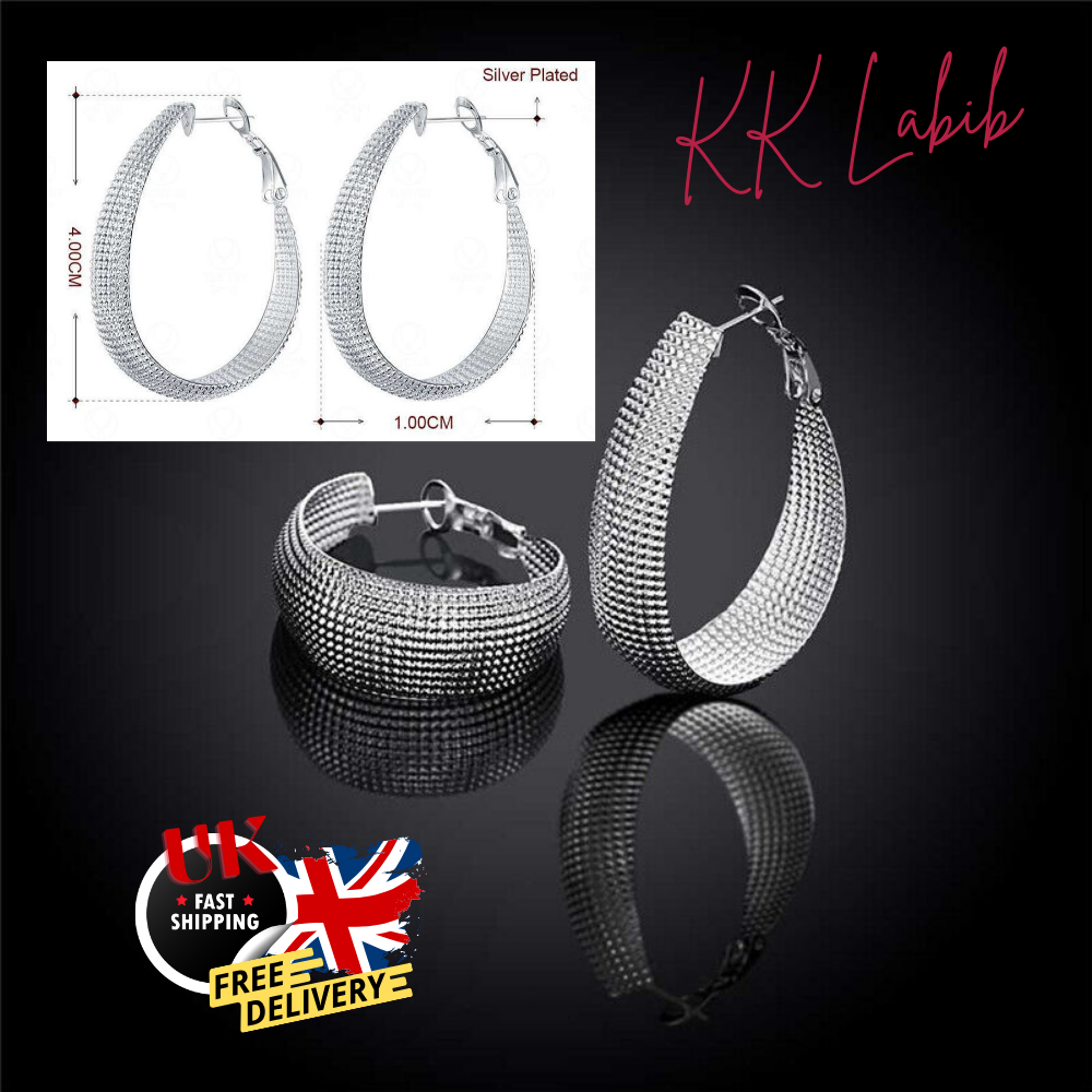 Women Oval Big Hoop Earrings, Ladies 925 Sterling Silver Fashion Classic Hoop Drop Dangle Earrings Jewelry Gift These earrings feature a shiny, silver-coloured egg-shaped hoop design that is sure to catch the eye. The hook closure ensures a secure fit, making them perfect for any occasion, from weddings and graduations to birthdays and Valentine's Day. These earrings are perfect for those who appreciate luxury jewellery without breaking the bank. These elegant earrings are customisable and can be worn with a variety of outfits, making them a versatile addition to any jewellery collection. Product Features: Material : Crafted from 925 sterling silver filled, ensuring durability and resistance to tarnishing. Design : The earrings feature a distinctive big egg shape hoop design, adding a unique and eye-catching element to any outfit. Shine : Designed to be shiny, these earrings catch and reflect light beautifully, adding sparkle and elegance to the wearer's look. Size : With a noticeable size, these earrings make a statement without being overly heavy or burdensome to wear. The hoop earring size is 4 cm x 1 cm. (Length x Width) Versatility : Suitable for various occasions, from casual outings to formal events, these earrings can complement a wide range of styles and outfits. Quality : Crafted with attention to detail, these earrings are made to high standards, ensuring both aesthetic appeal and longevity. Comfort : Despite their size, the earrings are designed to be comfortable to wear, with secure closures that keep them in place without causing discomfort. Gift-Worthy : Packaged in an elegant manner, these earrings could make an ideal gift for someone special, given their attractive design and quality construction. Contact us We can be contacted at any time through eBay messages if you have any questions, comments or product requests. We will respond to you within 24 hours and do our best to help you out! We encourage our customers to contact us with any questions or concerns! We'd like to be sure you are completely satisfied with your purchase. Shipping Please make sure you provide the updated address before you pay. Item will be dispatched within 24 hours of payment verification. We are offering the following delivery services: Economy delivery Royal Mail 2nd class Express delivery Royal Mail 1st class Returns We offer a 30-day refund | Buyer pays for return postage. We will not accept returns on items that have been worn or used. Items must be returned with all tags intact and in their original packaging. If an item is received damaged or we have sent the incorrect item, please notify us immediately and include a picture of the item. Items must be returned with the original tag and packaging. The Buyer is responsible for return shipping charges. Please visit our store to check out other hot-selling products. Thank you for shopping at kklabib