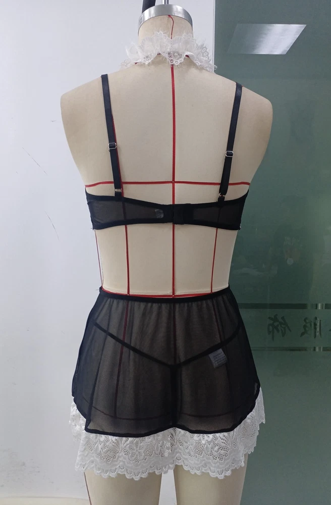 Features: Material : 85%Ployester,15%Acrylic Color:Black Womens Maid Costume Nightwear Lace Trim Dress with Apron Choker Cuffs. Made of soft fabric, breathable, comfy to touch and wear, makes you feeling well. Perfect for theme party, H alloween, role play, honeymoon, Valentine’s Day Set Include : 1 x Lingerie Set(no panty)