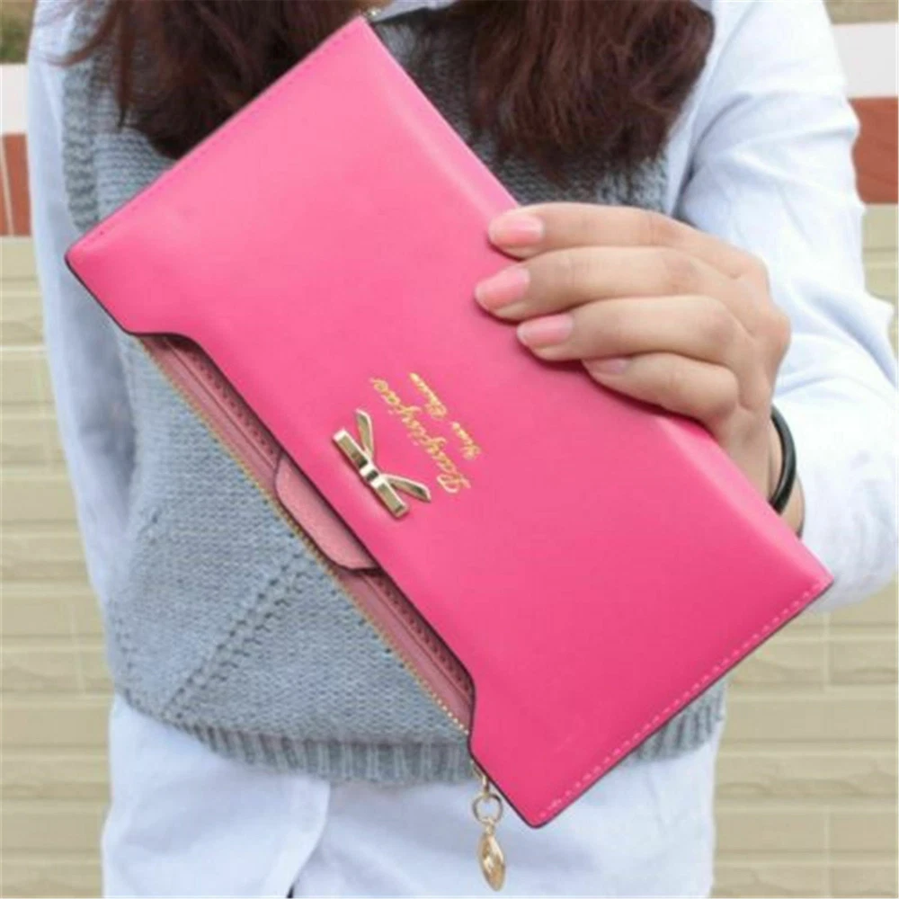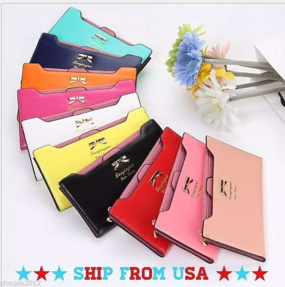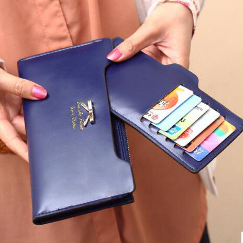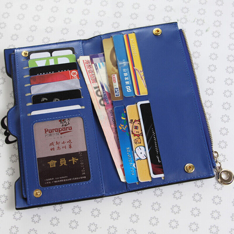Description 100% Brand new and high quality Color: Black, Rose Red, G reen, Blue, Pink, Yellow Structure: Main section comes with 18 card slots, 2 big cash holders, 1 zipper coin holder, 2 photo holders, this bag can be used for both business and casual occasion. Item type: Wallet Size: 19.8cm*1.5cm*10.2cm(7.79"*0.59"*3.94") Material: PU Leather Package contents: 1 x Fashion Women Wallet Without Box
