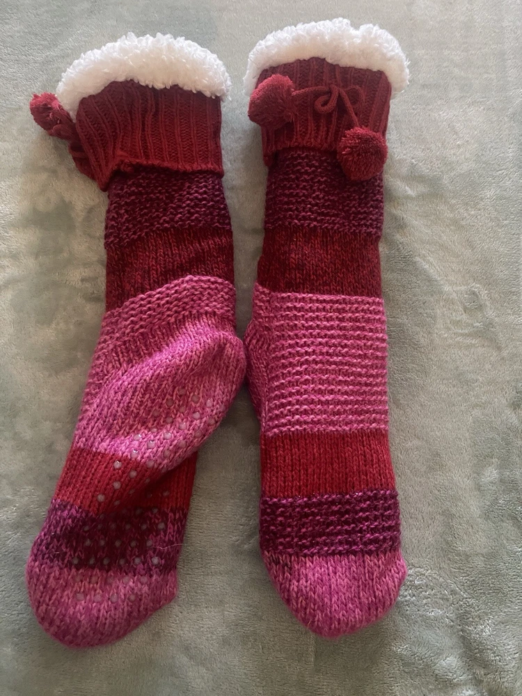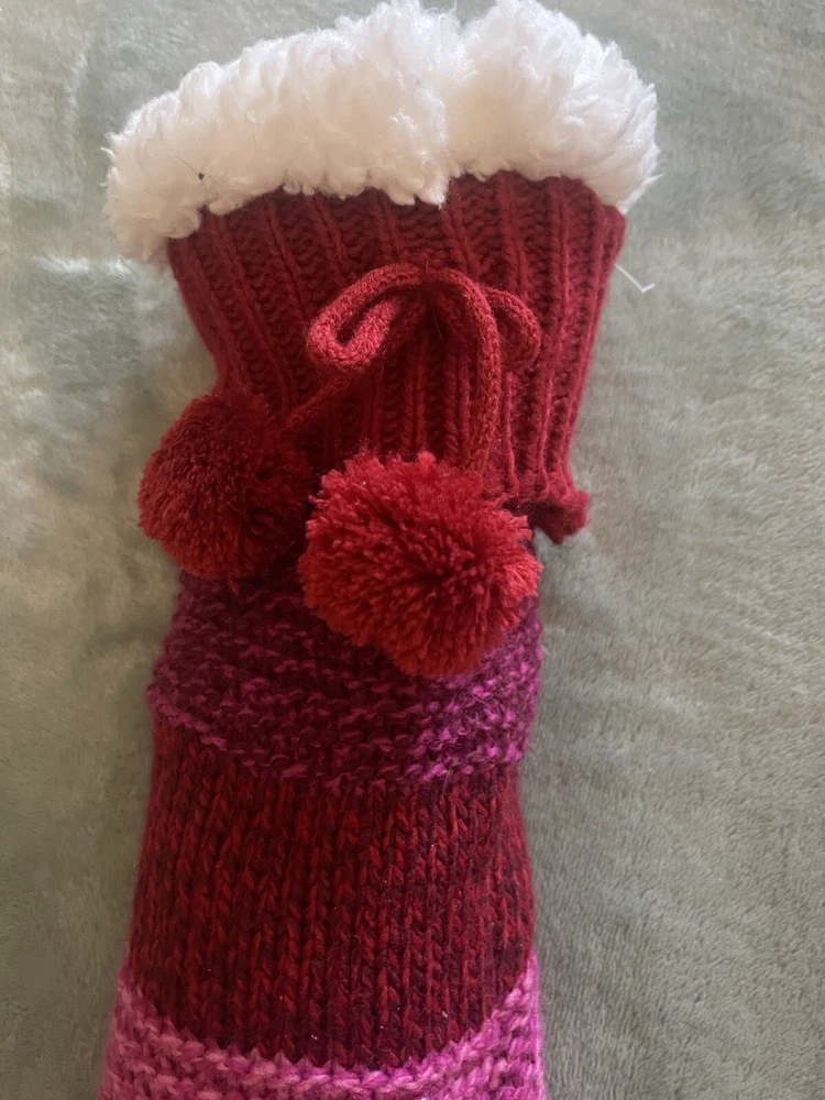 Stay cozy at home with these NWOT Women Sherpa Fleece Thermal Fuzzy Warm House Slipper Socks. Perfect for walking and lounging around the house, these mid-calf socks feature cushioned, lightweight, and non-slip designs that provide thermal warmth. The knit socks are machine washable and come in a vibrant red/pink colors with a classic and colorful theme, making them a perfect for cold weather. Never worn. The socks are made of high-quality fleece/knit material and have a one-size medium fit that is suitable for all women. They also have foot grips that ensure ultimate comfort and breathability. Whether you're looking for a perfect gift or treating yourself, these bed/slipper socks are a must-have for the winter, fall, and spring seasons. Ships Fast! Thanks for Looking!