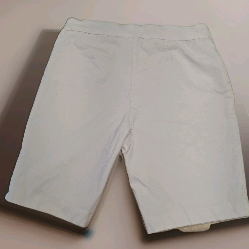 These Women's White Pull On Shorts by Time & Tru are perfect for casual occasions in the summer, fall, or spring. Made from a comfortable and stretchy blended fabric, these Bermuda style shorts feature a pull on closure and a flat front. The mid-rise fit offers a regular fit with slash pockets for added convenience. Machine washable for easy care, these shorts are a versatile and practical addition to any woman's wardrobe.