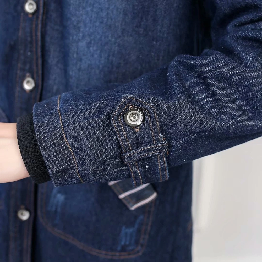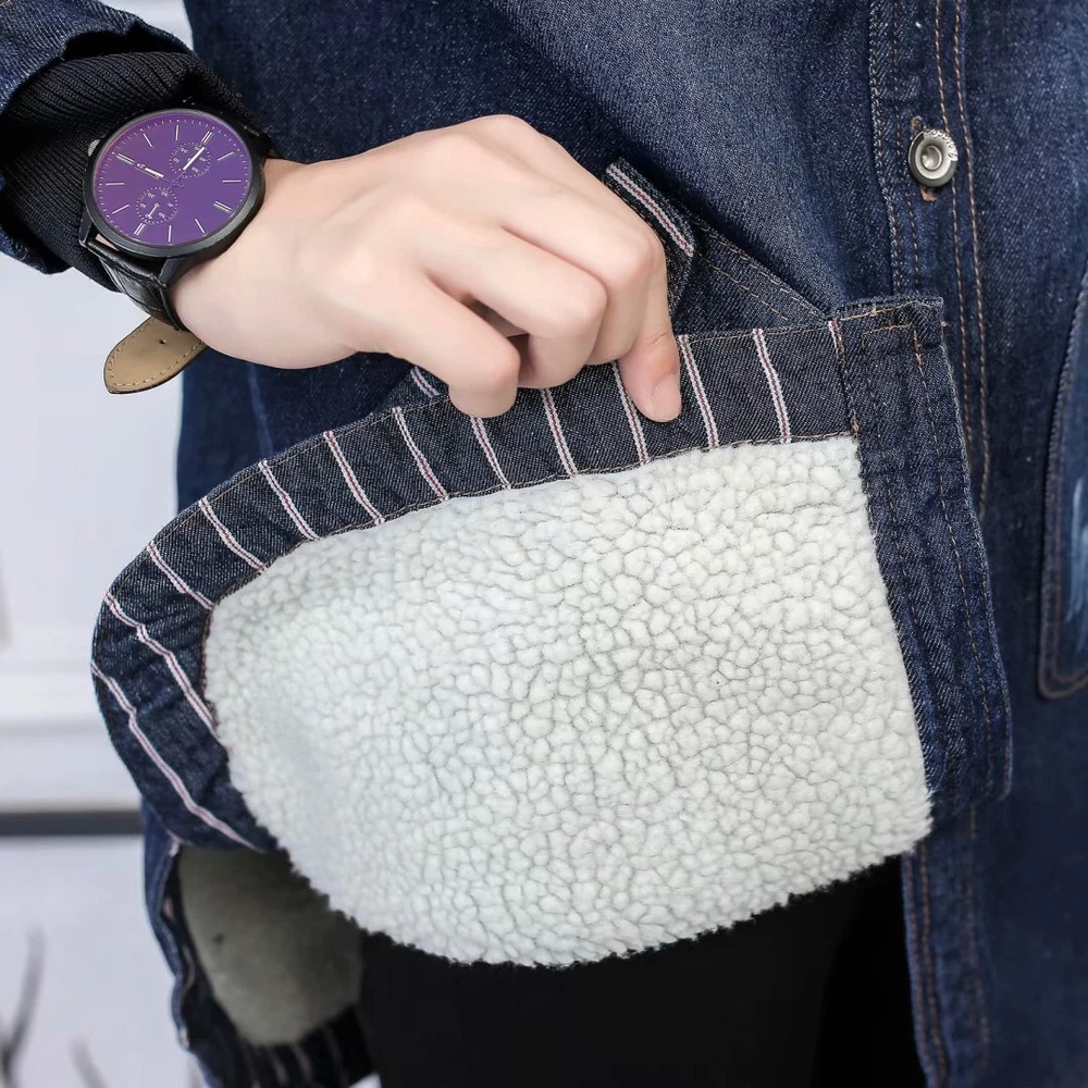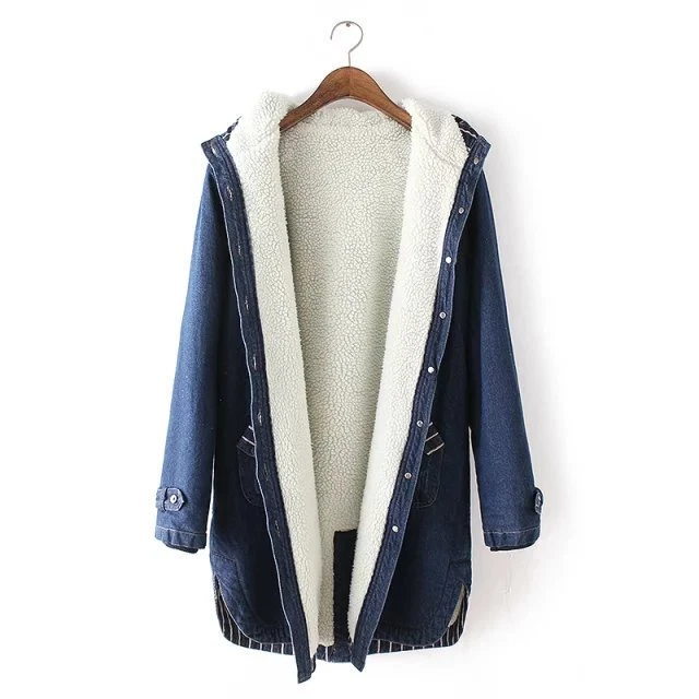 Women Winter Casual Long Jeans Jacket Fleece Lined Warm Denim Coat Hooded Parka