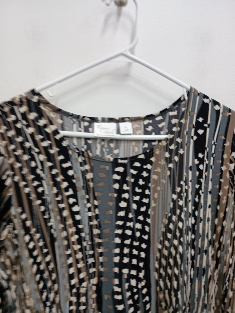 Women With Control Wearable Art Tunic Top Womens XL Abstract 3/4 Sleeve Uneven Features: All Season, Breathable, Collarless, 3/4 Sleeve, Pullover, Casual, Travel, Easy To Care, Tunic, Relaxed Fit, Allover print, Style Profile: Wearable Art, artsy, Abstract, Colorful, Modern Condition: Pre-Owned In Excellent Condition Measurements: Pit To Pit: 23 in Length: 30-36 in We want you to have a positive experience. Please examine the pictures carefully before purchasing! Thank You!