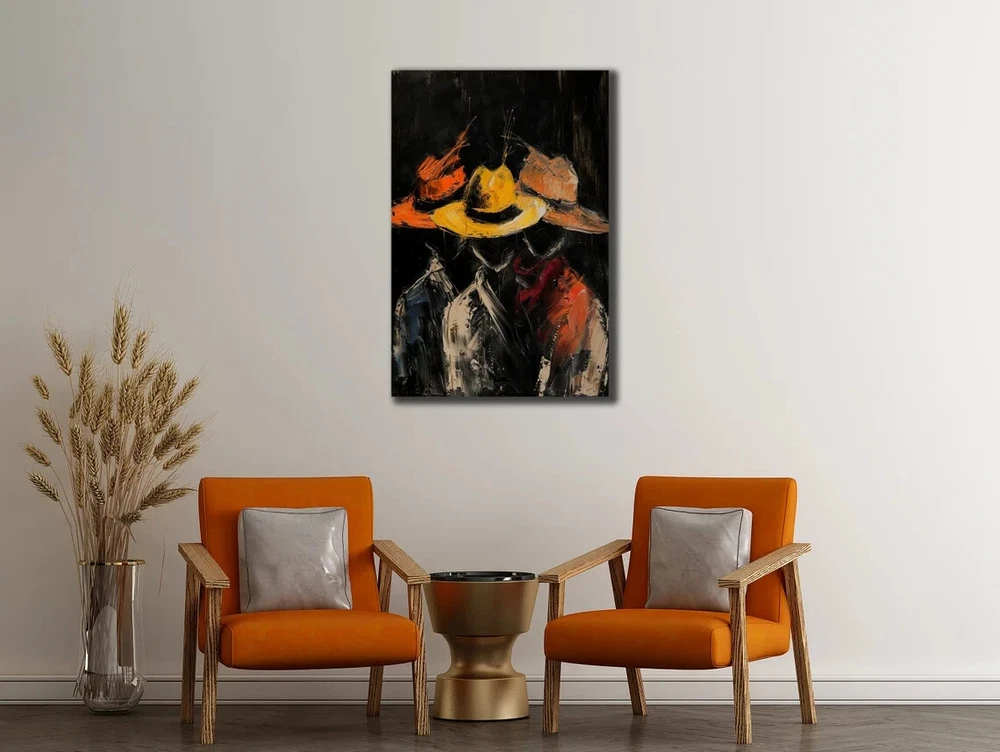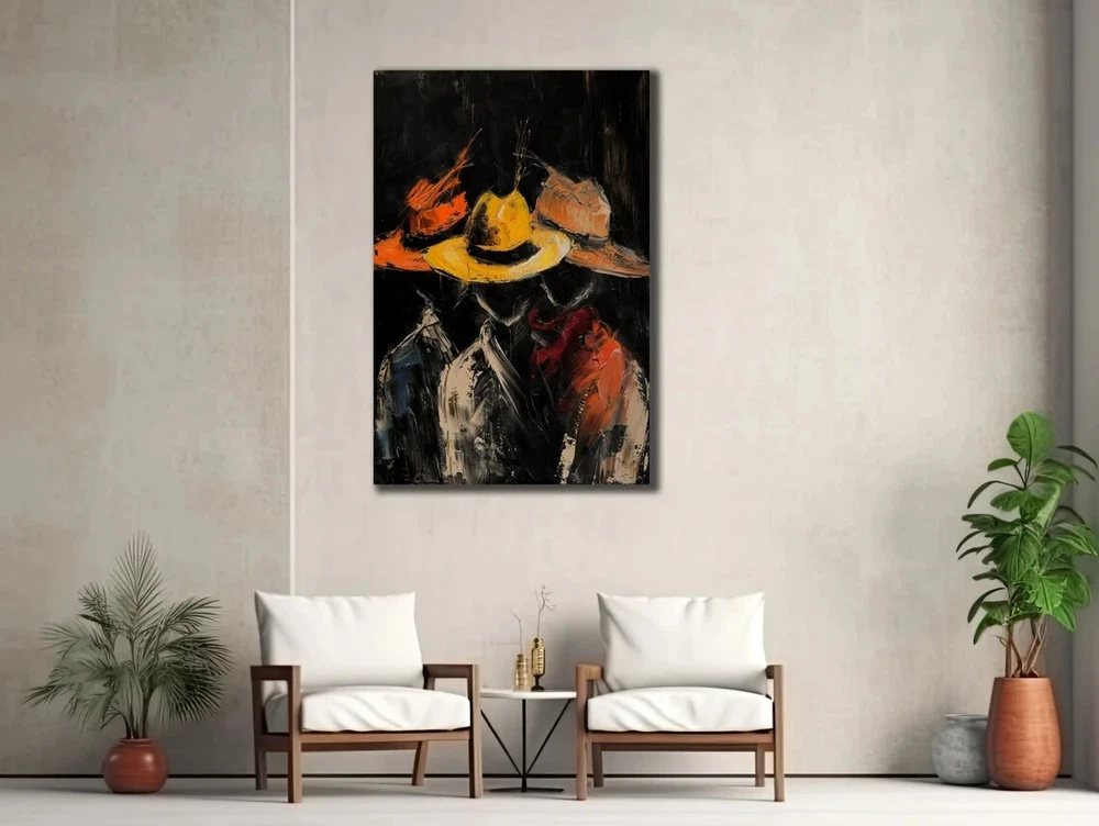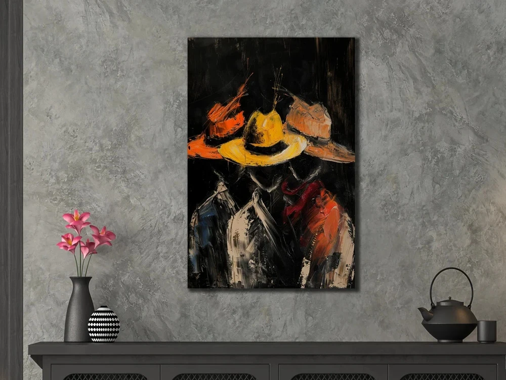 Women With Hat Vibrant Abstract Paint Unframed Canvas Print Australian Wall Art