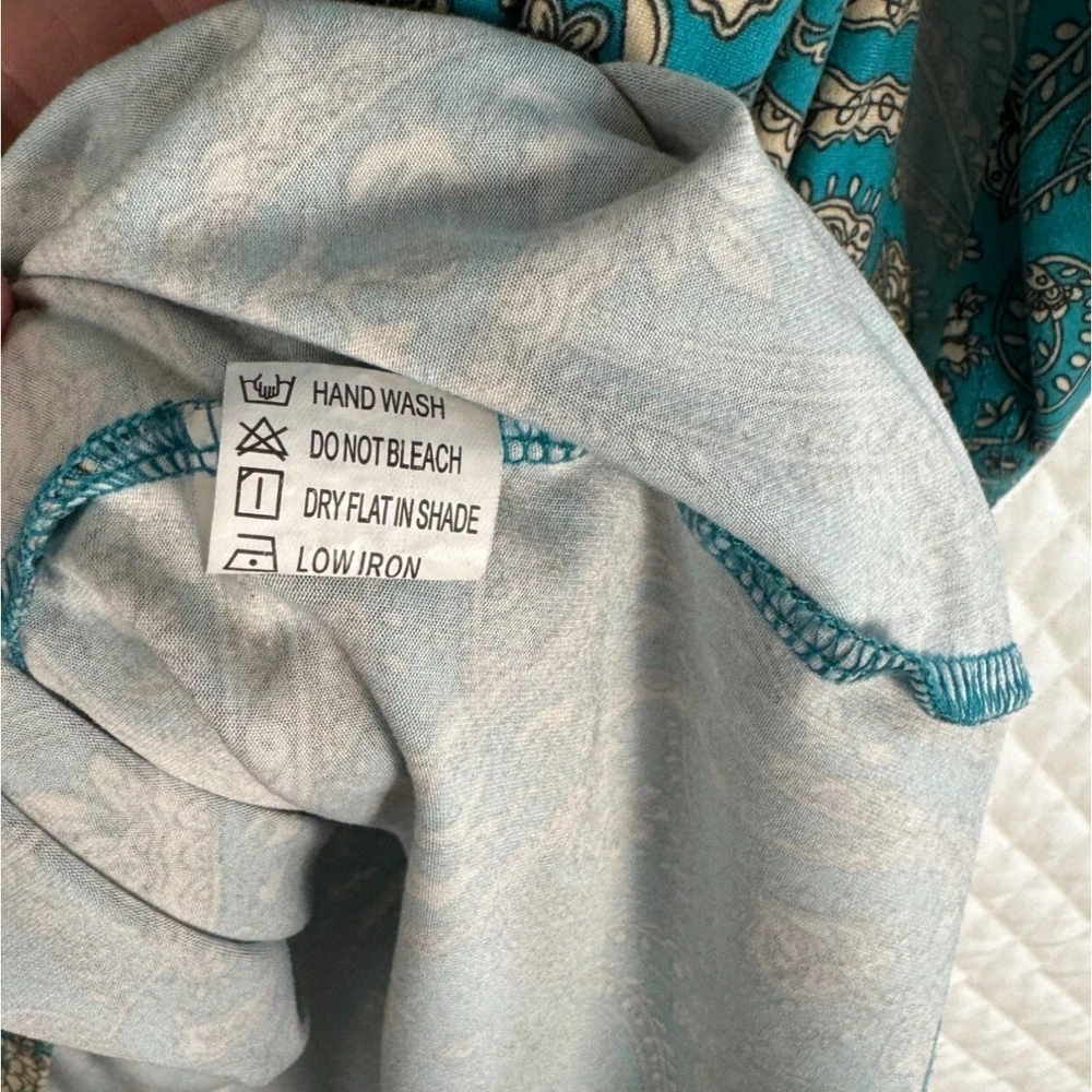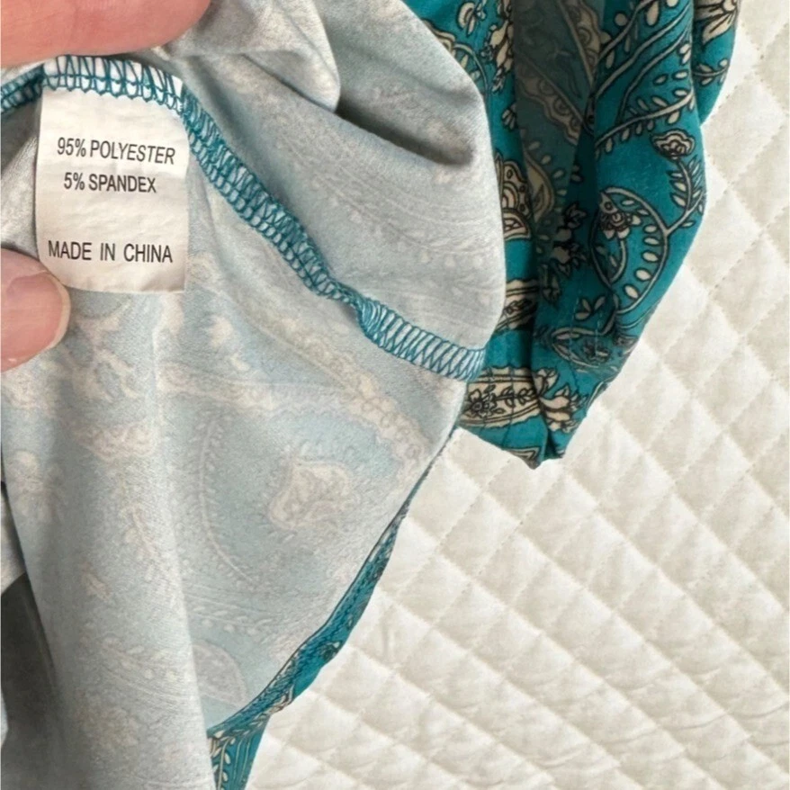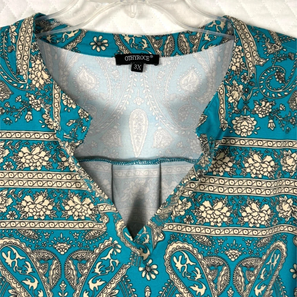 Ideal for a relaxed yet stylish look, this tunic top features a beautiful paisley print. The loose fit and lightweight material ensure comfort throughout the day. • Bohemian paisley print • 3/4-length sleeves • Keyhole neckline • Pull-on closure • Relaxed fit • Lightweight polyester • Machine washable Width = 25" (arm pit to arm pit) Lenght = 30" Sleeve - 17" (roll sleeve) Romantic, lagenlook, feminine, career, office, cottage core, paisley, art to wear, comfort, flowing