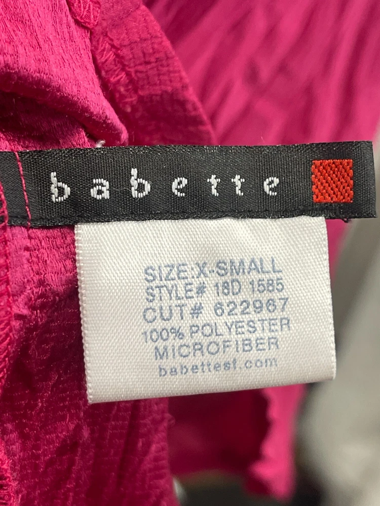 Women’s Babette Pink Polyester Crinkle Cut 7 Button Front Close Blouse Size XS Brand: Babette Overall Condition: Excellent condition. See pictures for details. Material: Polyester Shipped with USPS Priority or Flat Rate, or if possible First Class Mail. This punk polyester blouse is both soft and comfortable. From Babette this blouse is made from polyester and features the iconic crinkle cut design. 7 front button closure with full length sleeves. Roll down collar and short waist. Details for Shopper Shoulder: 15 inches Sleeve: 24 inches Bust: 15 inches Waist: 15 inches Length: 21 inches in the front, 26 inches in the back. Payment Policies We accept payment through PayPal, credit card, and debit card. Please note that the item may be relisted if payment is not received within the 10 day period. Shipping Policies Delivery estimates will be displayed at checkout. In-store pickup is also available if you would like to visit us in store. We ship to Continental United States only. Terms of Sale Each item we sell is unique. There are no exchanges for the same item available. All items are carefully inspected by My Sister’s Closet of Monroe County’s quality control team prior to shipping. Please carefully review item details. If you have questions, please message us regarding the item before purchasing. Note: Due to the different monitor and light effects, the actual color of the item shown might be slightly different from the color in pictures. Return Policy We strive to describe and measure our items accurately. If your order is not what you expected, we accept returns under the following conditions: The item was not as described as listed The wrong item was shipped. The item does not fit. If the wrong item was shipped, we will attempt to replace it with the item originally ordered. Please note - items not returned in the exact same condition, with tags attached, may be subject to a partial refund to account for loss of the item’s value. Please refer to eBay Return policy for more details. You are covered by the eBay Money Back Guarantee if you receive an item that is not described as listed. Return Requirements: The buyer must return the item within 30 days of receipt. Buyer is responsible for return shipping charges. The item(s) must be returned in the original condition, unworn, with tags attached. Thank you for shopping with us! A little bit more about us… My Sister’s Closet is a nonprofit serving women in poverty since 1998. Our mission is to help women move closer to economic self-sufficiency by providing essential career development tools. This includes job training, mentoring, advocacy services, and professional attire for job interviews to help them find employment. We have helped over 2800 women thus far. Most clients we serve have been dealing with homelessness, domestic violence, illness, divorce, job loss, economic recovery and/or lack basic education. Visit Our eBay Store