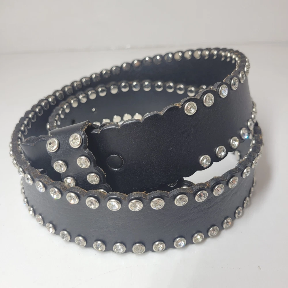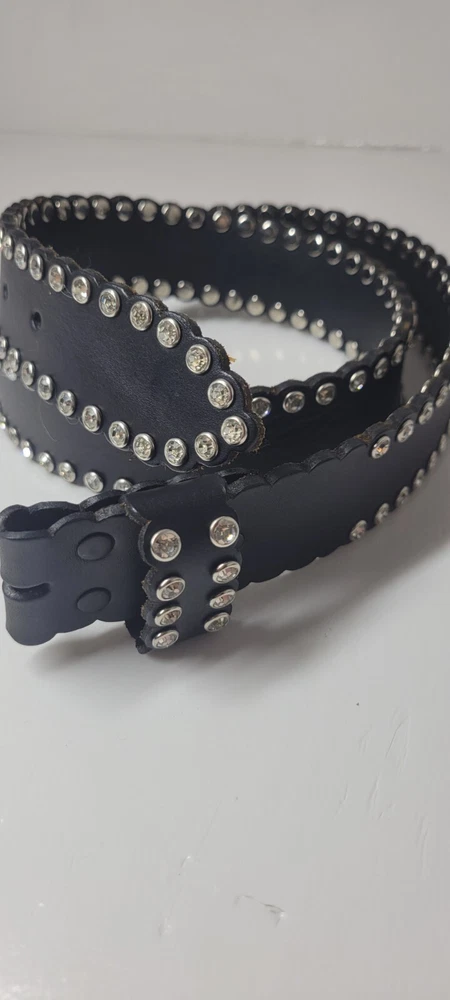 Womens Nocona Black Genuine Leather Belt Silver Studded Size 32