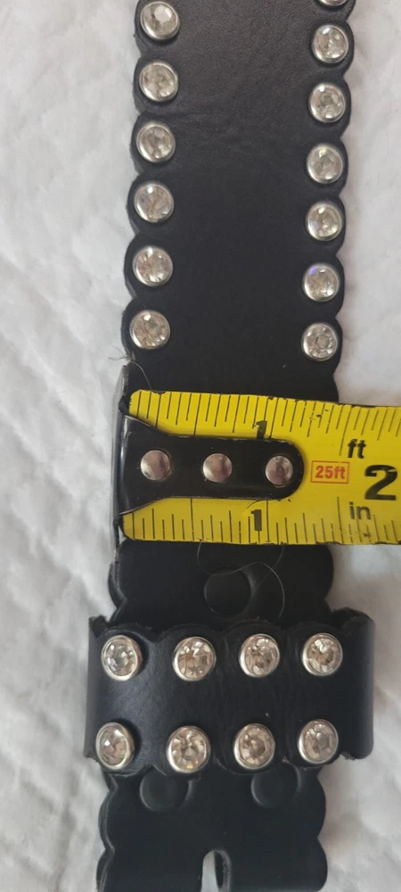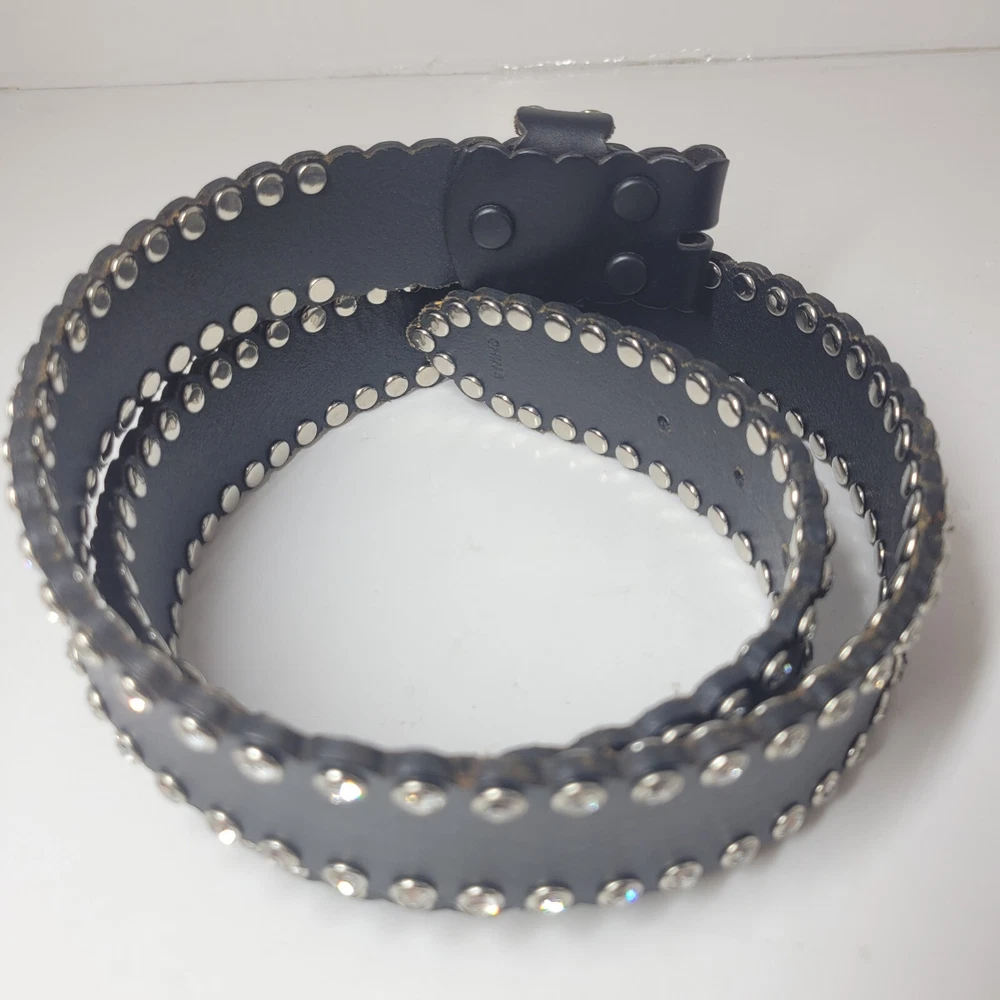 Womens Black Rhinestone Studded Faux Leather Belt Interchangeable 40"