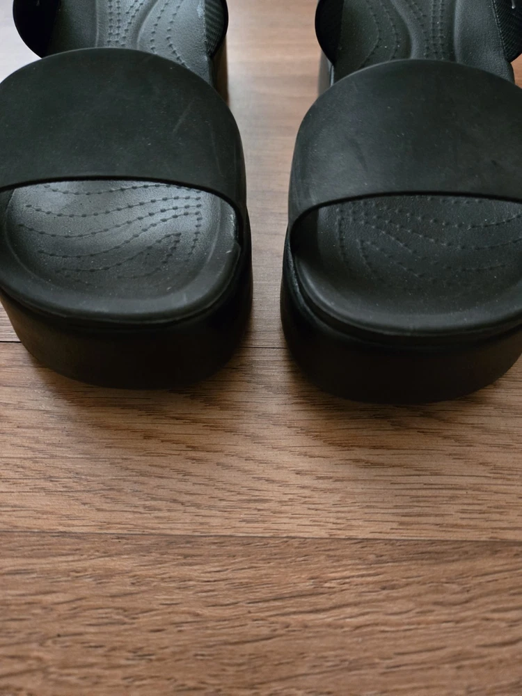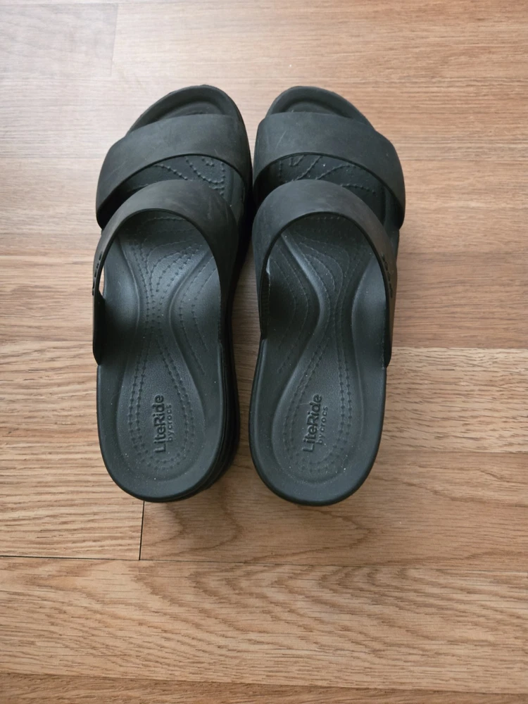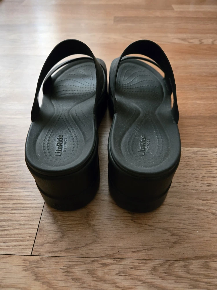 Women's Black Wedge Sandals By CROC Size 7 Pre-owned in good condition, have a little bit of scuffs on the top, they were only worn 3 times