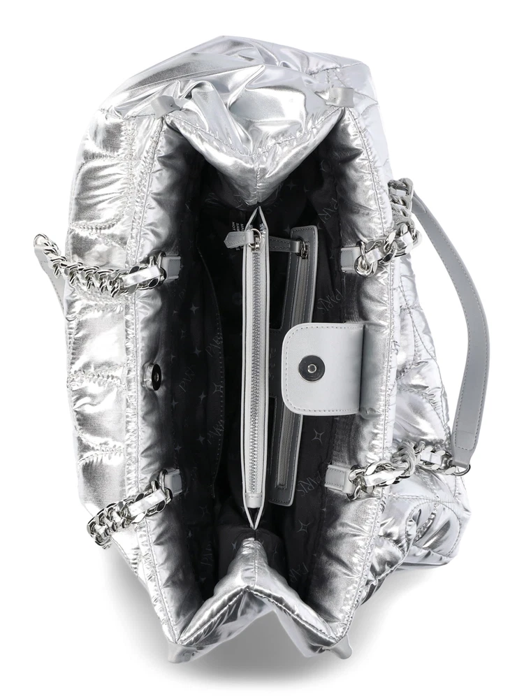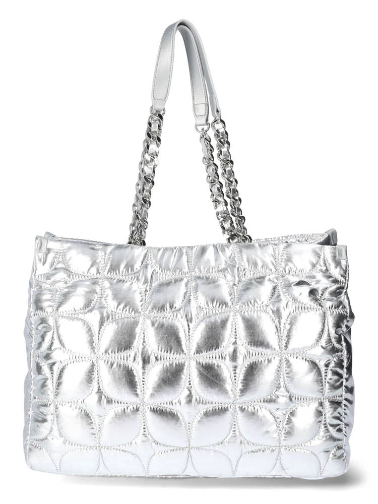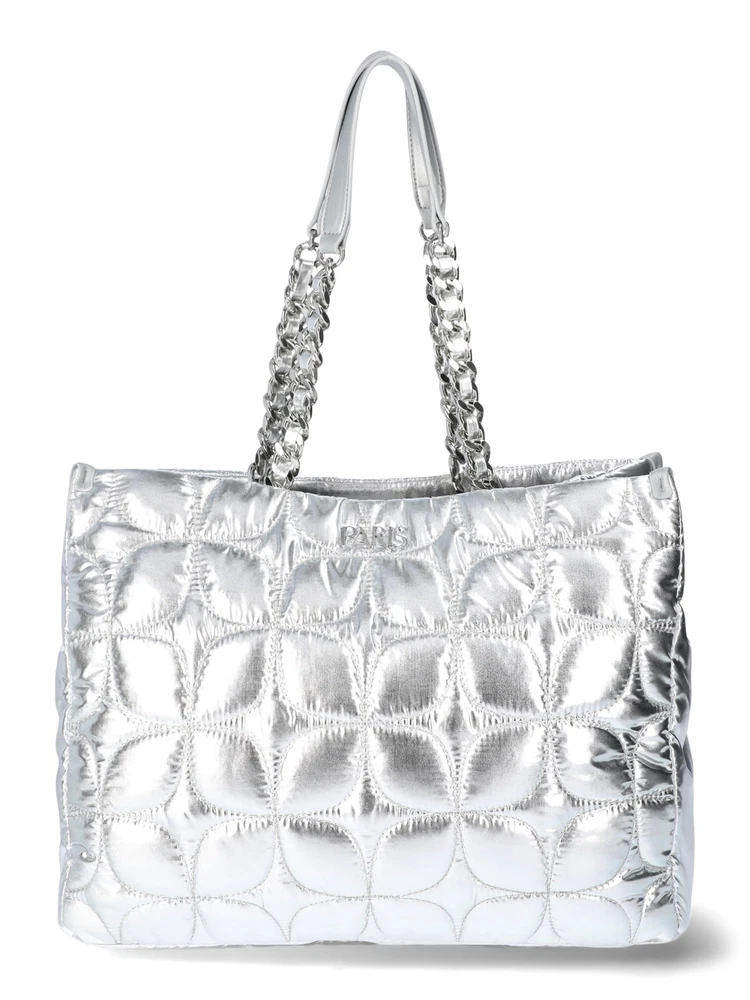 Product details Tote-ally cute! Paris Hilton’s Carson Quilted Nylon Tote is a fun fashion accessory and a functional handbag for your everyday outings. The exterior features a quilted design that’s iridescent for a color-changing finish. The large, divided storage compartments are roomy for all of your items on the go—so easy to organize for peace of mind, too. Material: 100% Polyester Care: Spot clean Country of Origin: Imported Dimensions: 15.4” W x 12.2” H x 6.3” D. Width is measured across the bottom of the bag. Handle type: Chain shoulder strap Closure: Magnetic closure Exterior details: Quilted exterior Interior details: Triple compartment interior; inner zip pocket On Nov 16, 2024 at 01:16:24 PST, seller added the following information: