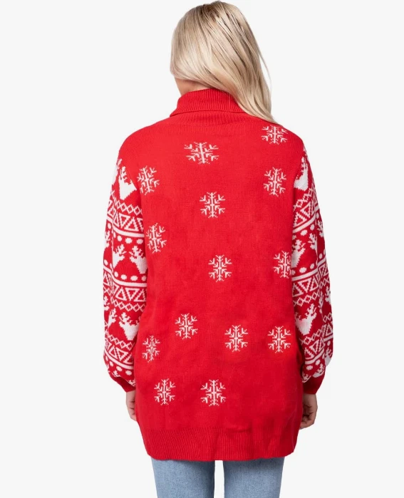 Women's Christmas Red Reindeer Ugly Long Sweater Built-in Light Bulbs, X-Large