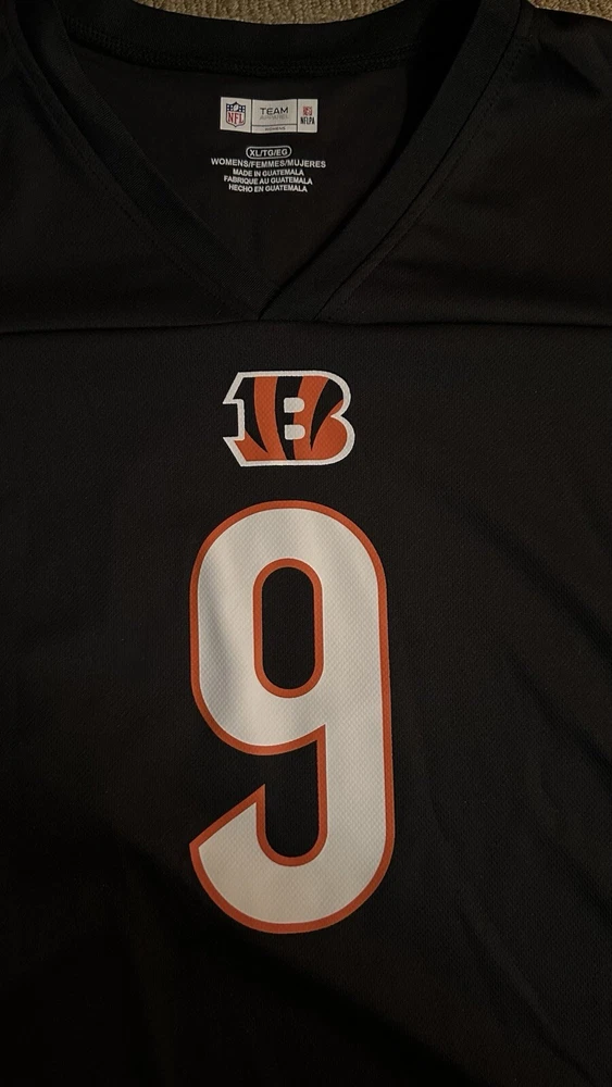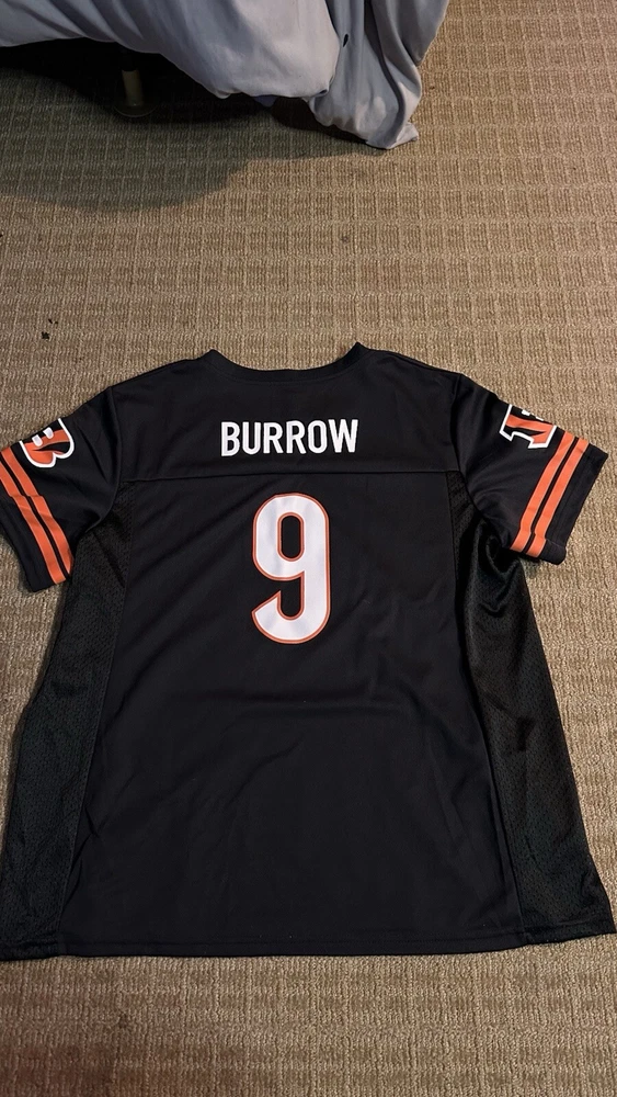 Gender:WomenPlayer:Joe BurrowTeam:Cincinnati BengalsColor:BlackSport:FootballOfficially Licensed:YesProduct:JerseyLeague:National Football League (NFL)Size:XLBrand:NFLPA