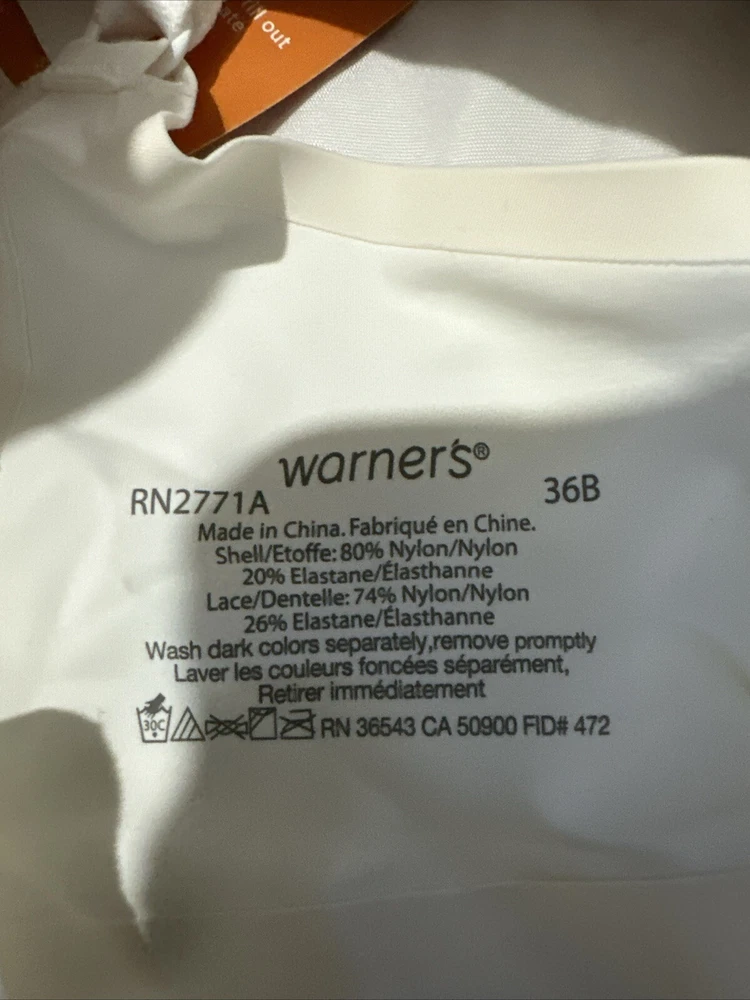 UPC:Does not applyDepartment:Womengtin13:Does not applyUnderwire Type:WirelessAccents:StrapOpacity:OpaqueBrand:Warner'sColor:WhiteTheme:SportsStyle:Does not applyType:Does not applyClosure:Hook & EyeMaterial:HempSize:36BFeatures:Lightly LinedPattern:Solid