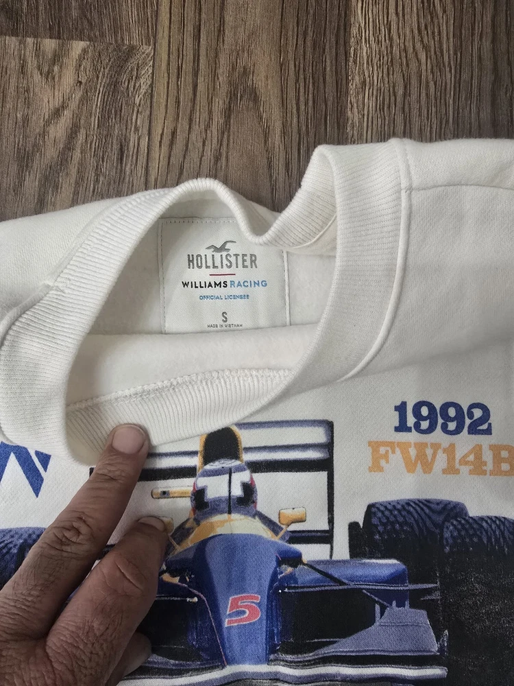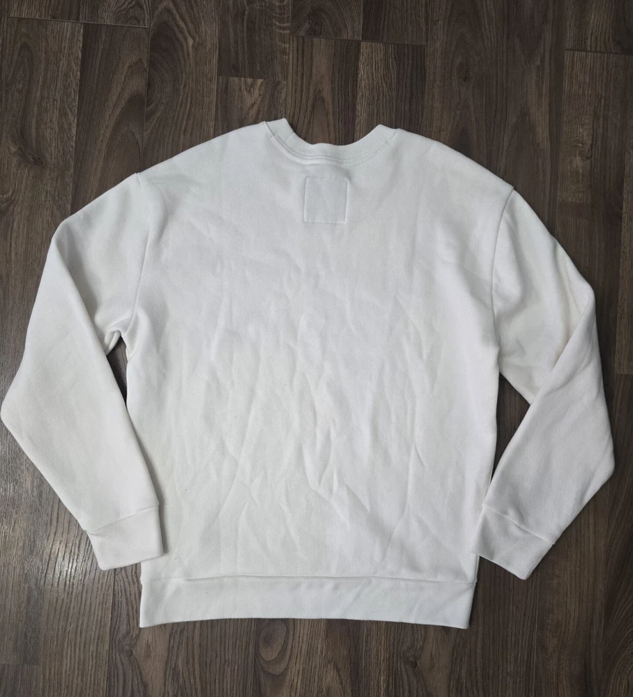 This women's Hollister sweatshirt is a lightweight cotton pullover in size Small. It features a solid white color with a round neck, long sleeves, and a classic logo design. Made of a blended fabric with a cotton lining, this sweatshirt is suitable for activewear and is ideal for walking or school activities in the winter, fall, or spring seasons. It offers a regular fit and is designed for comfort and style.