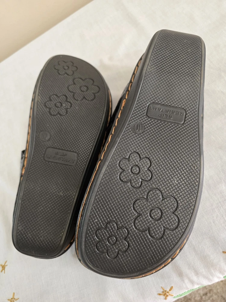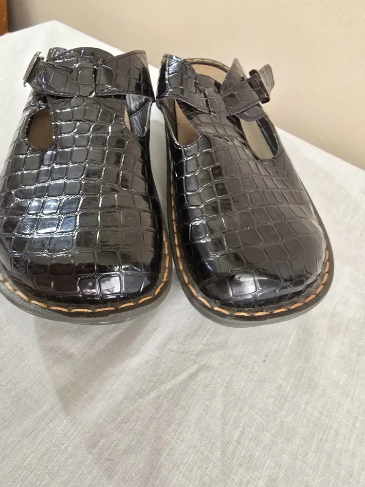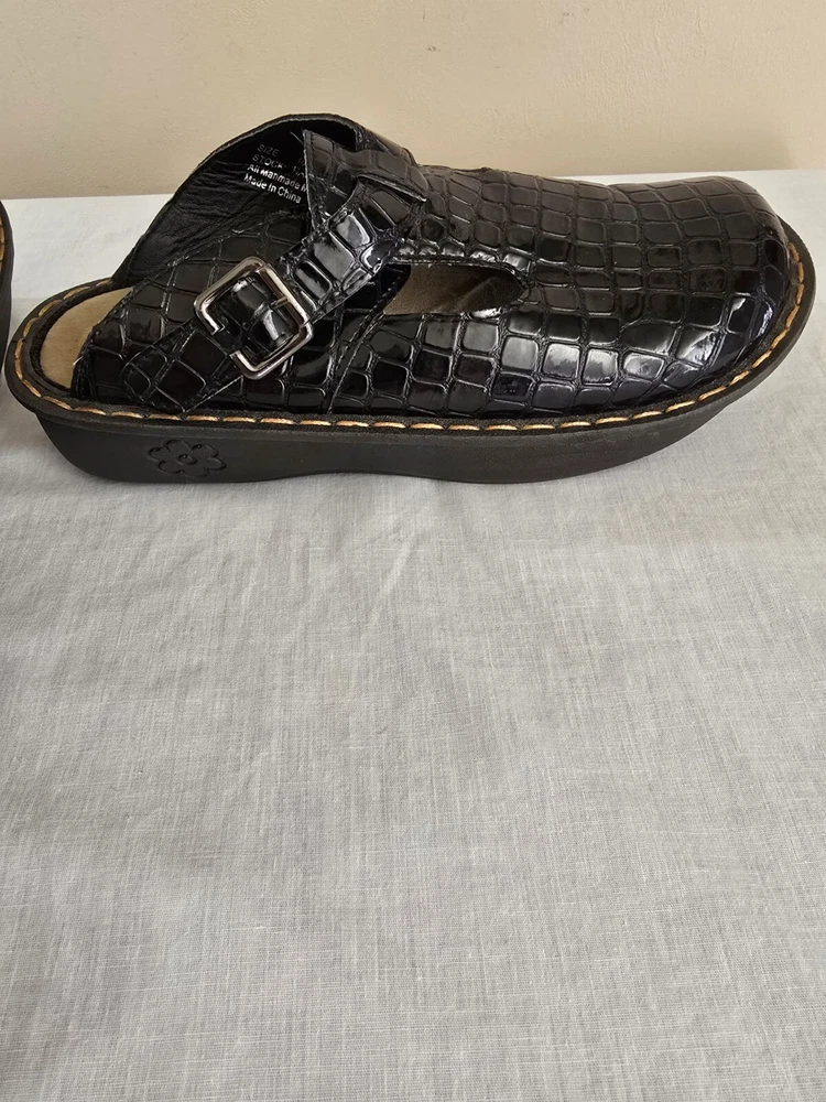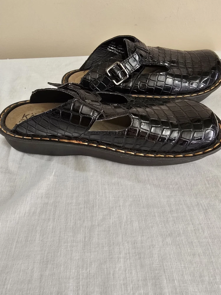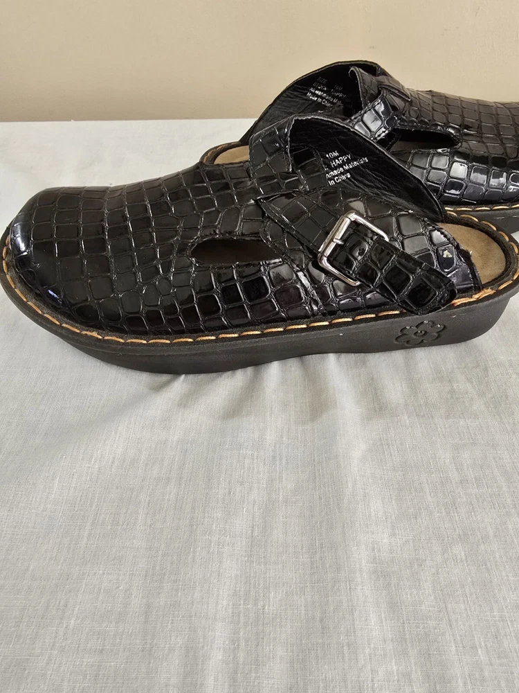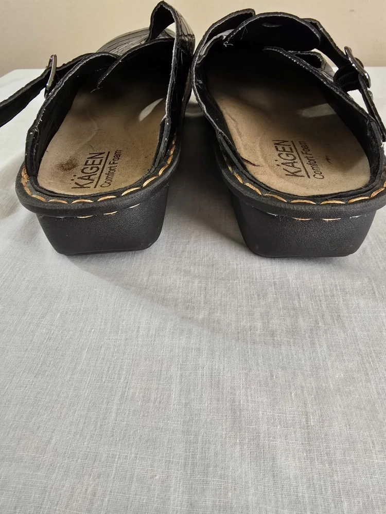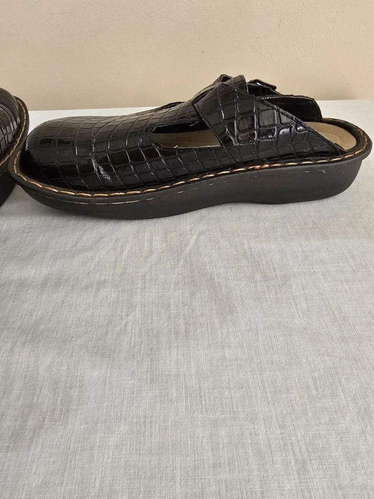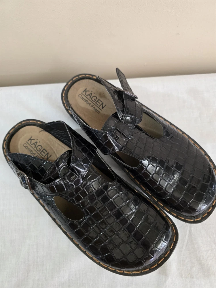 Women's Kagen Nursing Black Slip Resistant Slip-on Croc Pattern Clog Shoes