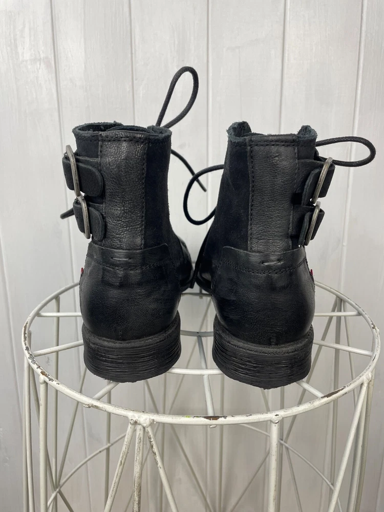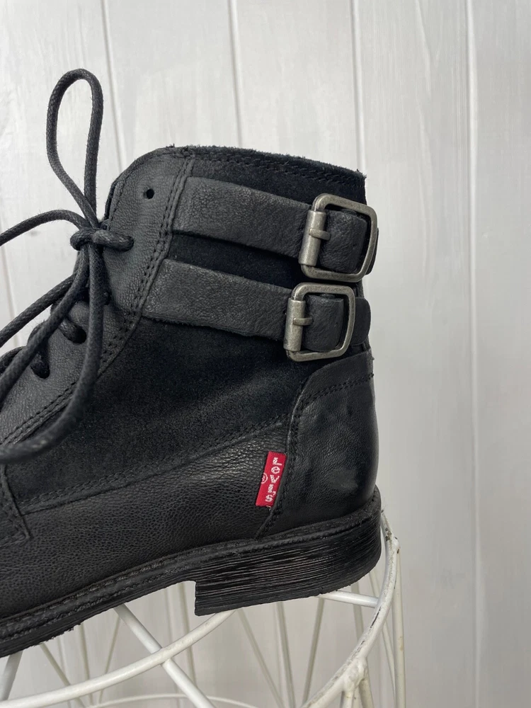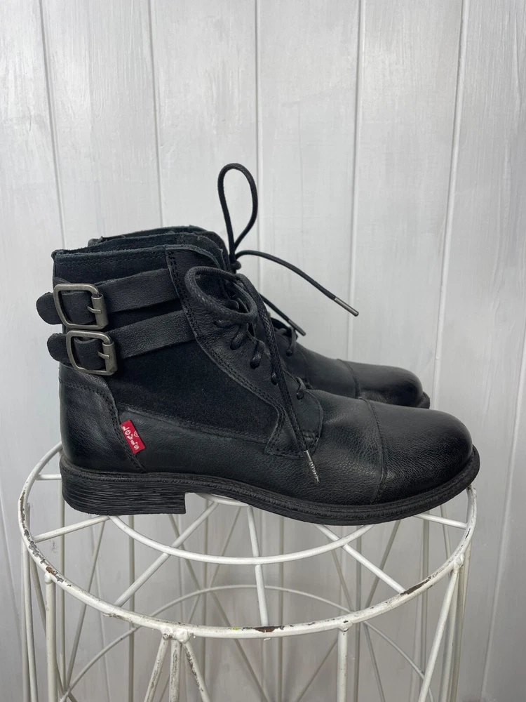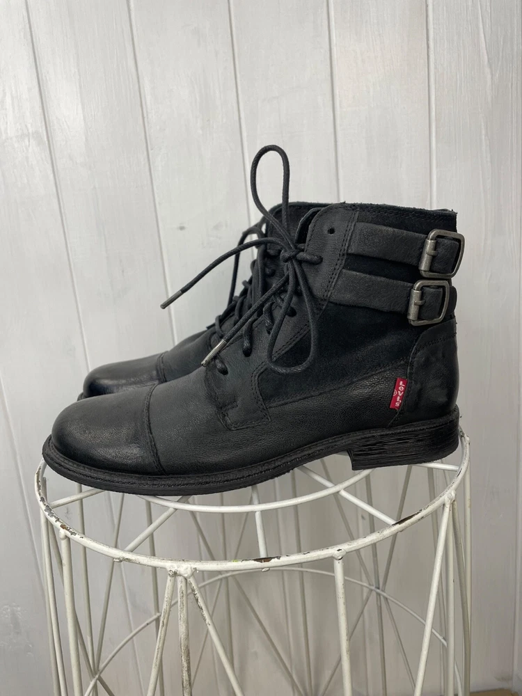 UK Shoe Size:6Customized:NoStyle:WesternDepartment:WomenOutsole Material:FabricToe Shape:Round ToeOccasion:CasualType:BootInsole Material:LeatherUpper Material:LeatherEU Shoe Size:39Closure:DrawstringUS Shoe Size:7.5Color:BlackShoe Width:StandardVintage:NoPattern:SolidLining Material:LeatherSeller Notes:“Very good used cond., has sign of wear without defects.”Shoe Shaft Style:Mid-CalfBrand:Levi'sTheme:Biker, Bohemian, City, Cowboy, Cowgirl, Gothic, Metal, Motorcycle, Punk, Rock, Southwestern