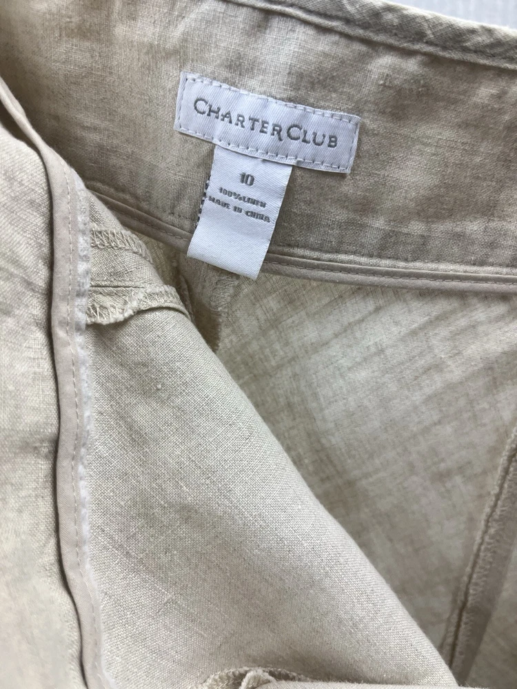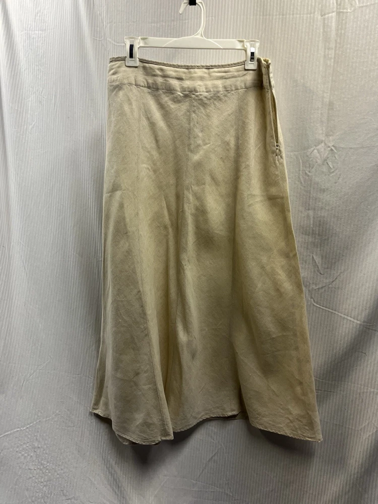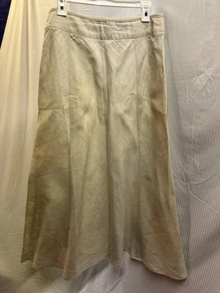 Women’s 100% linen face skirt by charter club size 10 with side zip long. Let me know if you have any questions. Thanks for looking item is in good condition