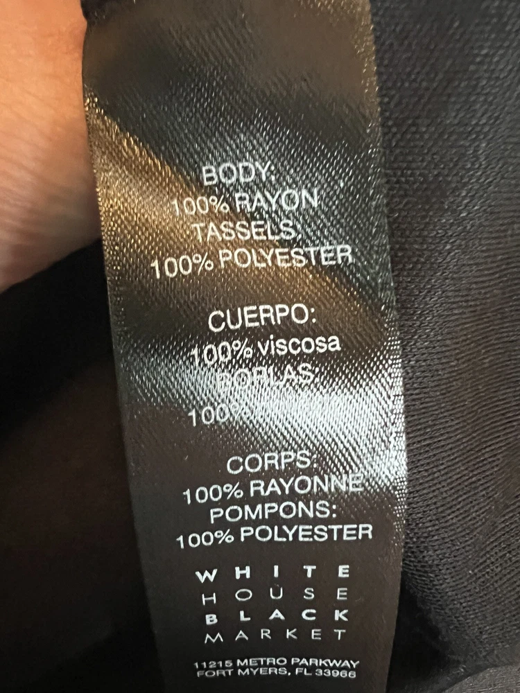 Elevate your wardrobe with this stunning sleeveless blouse from White House Black Market. The black fringe accents on the round neckline add a touch of unique style that's sure to turn heads. This blouse is made from a blend of polyester and rayon, with a focus on comfort and durability. It's perfect for any occasion, whether you're dressing up for a night out or keeping it casual during the day. The size medium fit is ideal for regular size types, and the rayon fabric type adds an extra layer of softness to the blouse. Don't miss out on this must-have addition to your wardrobe!
