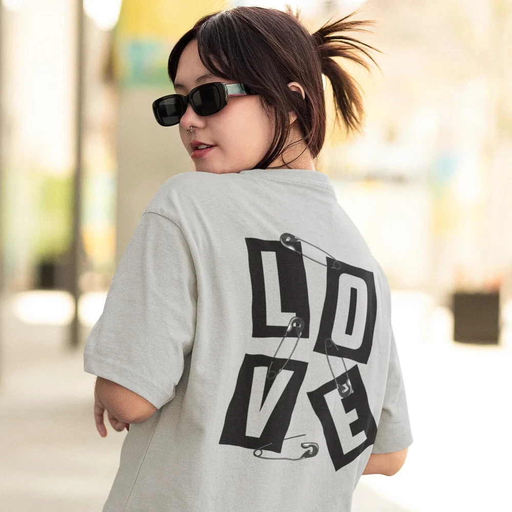 This women's oversized tee features a bold back print design, perfect for adding streetwear style to any outfit. Made with high-quality materials, it offers both comfort and fashion. Elevate your wardrobe with this must-have tee. FOR OVERSIZED LOOK PLEASE CHOOSE ONE TO TWO SIZES UP THAN YOUR USUAL SIZE DEPENDING ON YOUR CHOICE. Overview: Comfort and style are the name of the game for these custom boxy t-shirts. Their relaxed fit along with the dropped shoulders add that modern aesthetic that can blend into any occasion. Fabric: 100% airlume combed and ring-spun cotton (fiber content may vary for different colors. Medium fabric (6.0 oz/yd² (170 g/m²)). Fit: The relaxed fit keeps the wearer comfy in both casual and semi-formal settings while the crew neckline delivers that classic, neat style which makes it perfect for accessorizing. Fabric blend: Solid colors are 100% cotton; Athletic Heather is 90% cotton, 10% polyester.